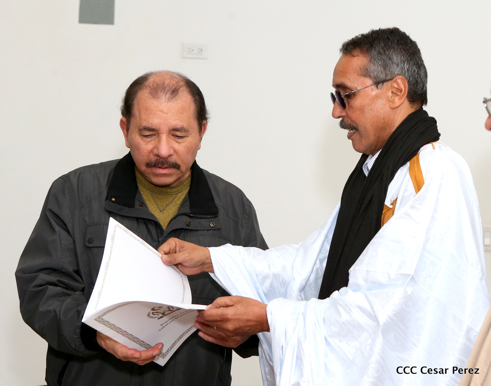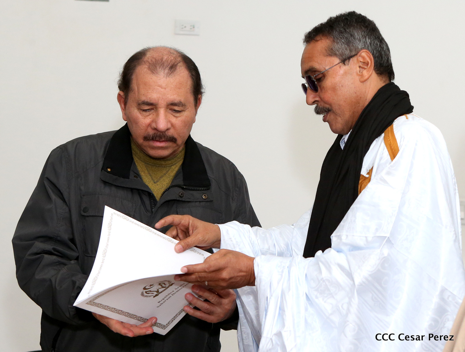 El Presidente de la República, Comandante Daniel Ortega Saavedra, se reunió la noche de este viernes con el presidente del Consejo Nacional de la República Árabe Saharaui Democrática, Jatri Adouh.