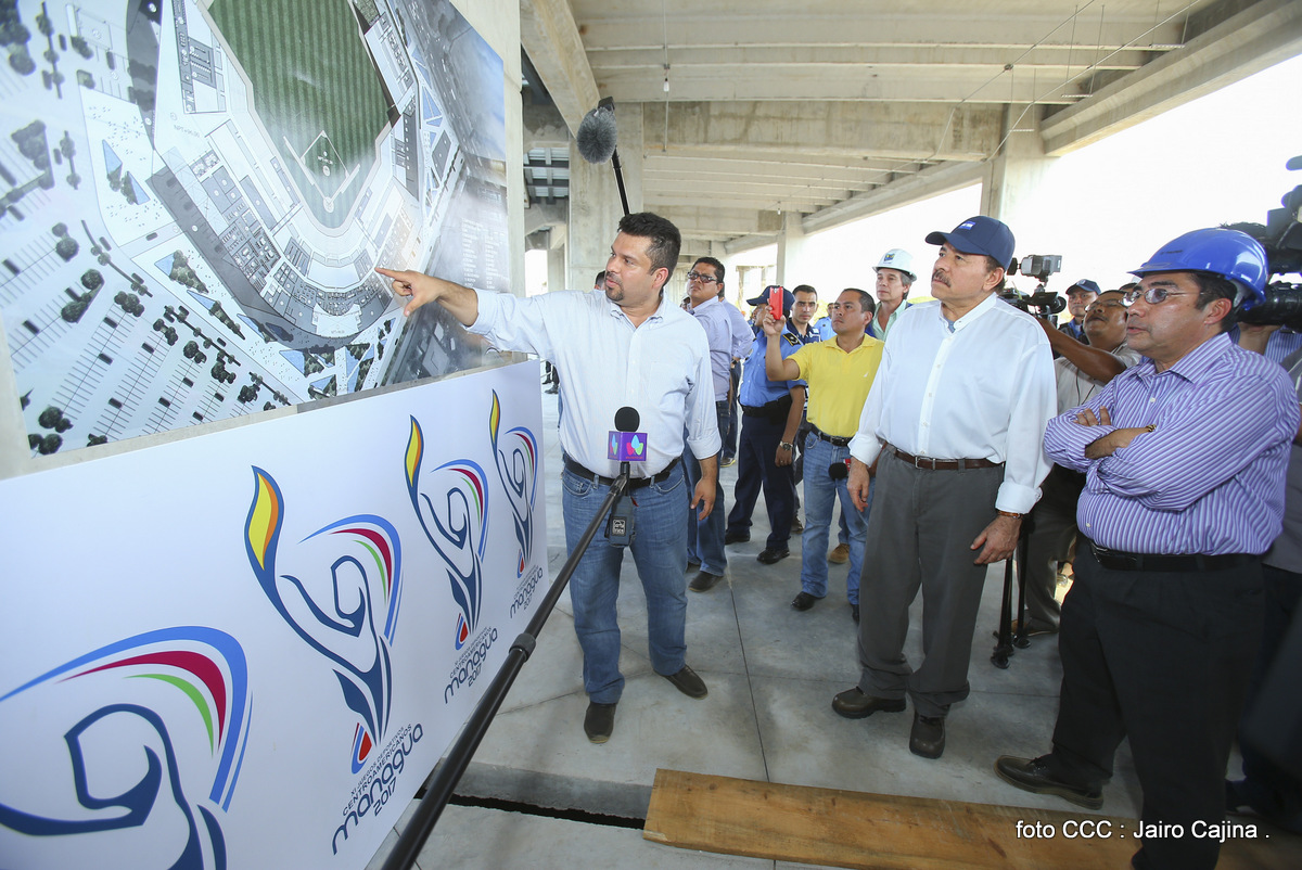 El Presidente de la República, Comandante Daniel Ortega Saavedra, realizó un recorrido por la construcción del nuevo Estadio Nacional de Béisbol “Denis Martínez” y el Polideportivo "Alexis Argüello", en aras de constatar los avances de estas dos importantes infraestructuras deportivas en la capital.