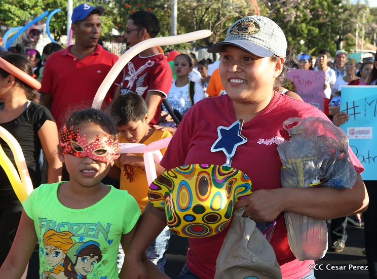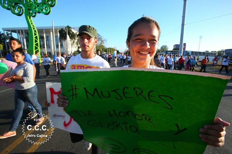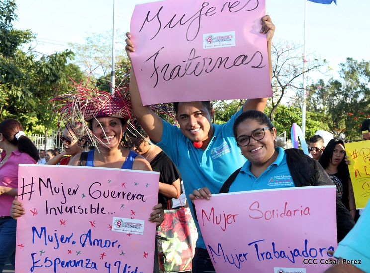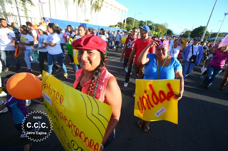 En una nutrida y colorida caminata, mujeres de distintos puntos de Managua conmemoraron el Día Internacional de la Mujer, destacando el protagonismo que tienen las mujeres en los programas impulsados por el Gobierno Sandinista.