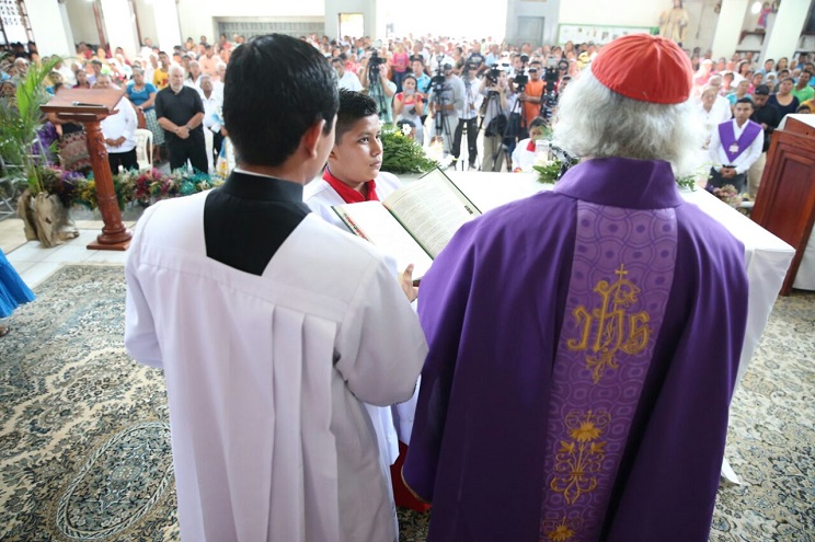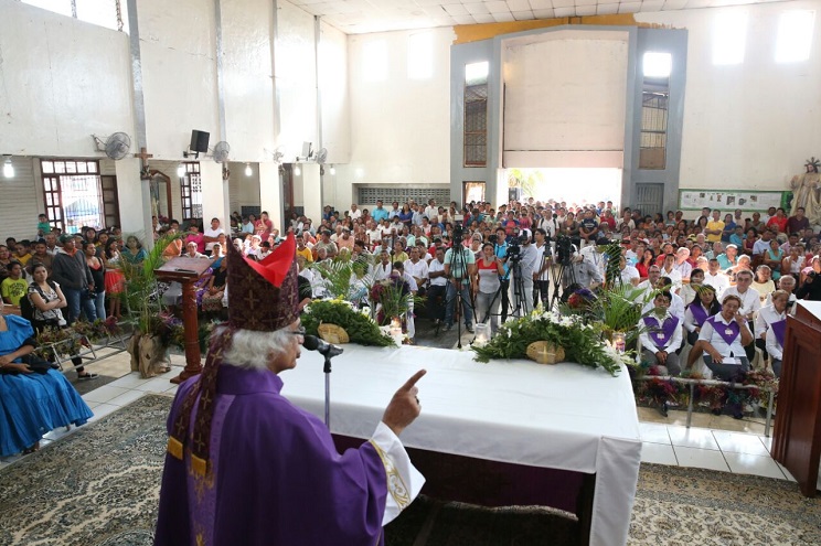 El Cardenal Leopoldo José Brenes celebra solemne misa en honor a San Lázaro en la Iglesia Santa María Magdalena de Masaya.
