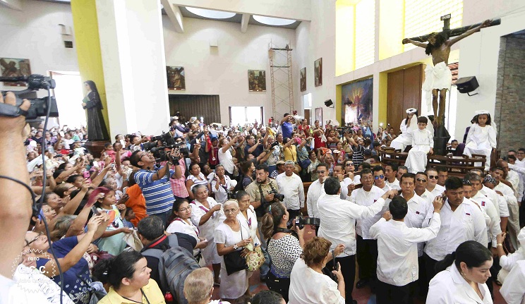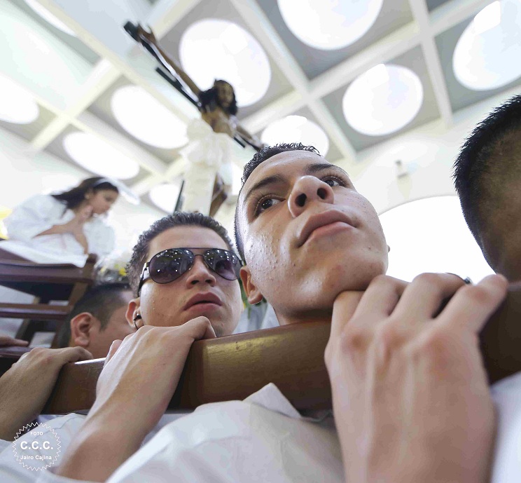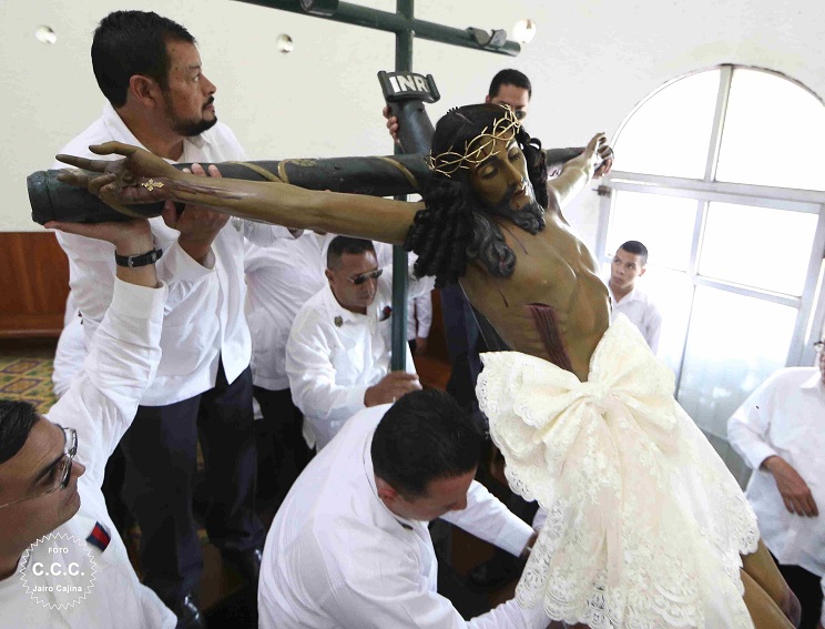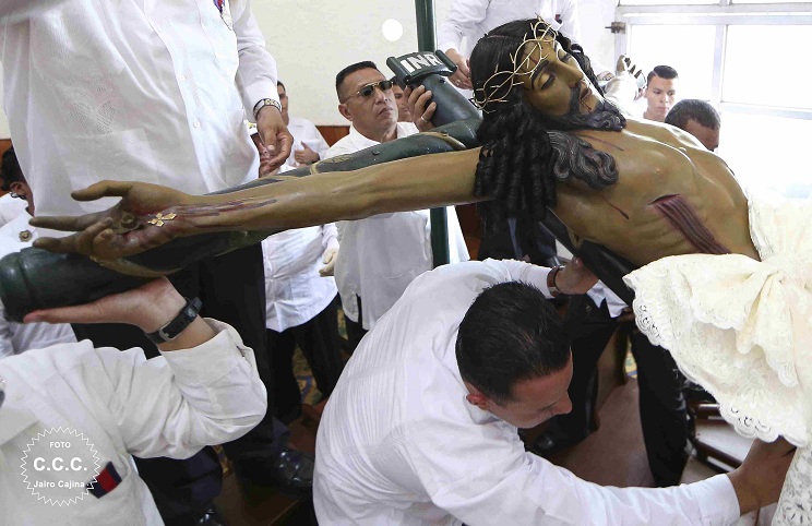 Miles de católicos de todo el país participaron este Viernes de Dolores en la tradicional bajada de la venerada imágen de la Sangre de Cristo en la Catedral de Managua.