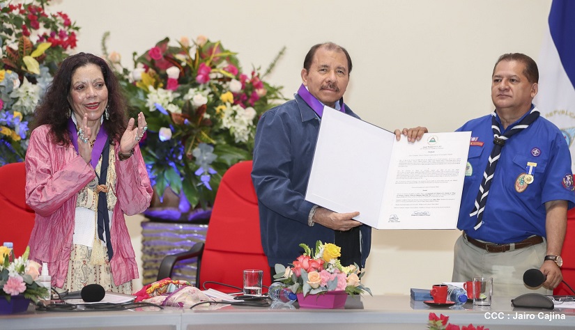 El Presidente de la República, Comandante Daniel Ortega Saavedra y la Vicepresidenta-Compañera Rosario Murillo Zambrana, presidieron el acto conmemorativo del centenario de constitución del Movimiento Scout en Nicaragua.