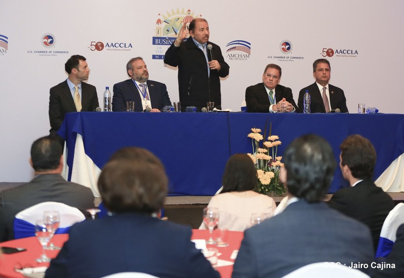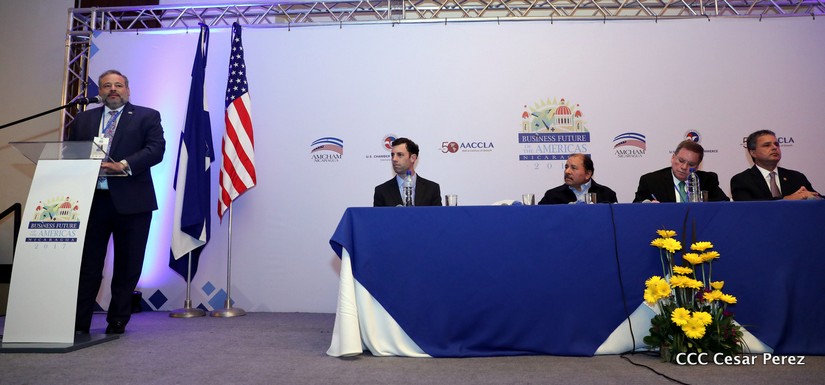 El Presidente de la República, Comandante Daniel Ortega, participó en el acto de clausura de la Conferencia Business Future of the Americas 2017, en la cual recordó que gracias a la Paz y a la Reconciliación es que en Nicaragua se logró iniciar un proceso de estabilidad que ha permitido el desarrollo y el crecimiento económico.