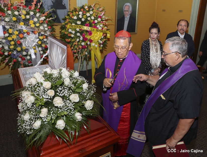 El Presidente Daniel Ortega Saavedra y la Vicepresidenta Compañera Rosario Murillo, presidieron el homenaje póstumo en honor al Padre Miguel D'Escoto Brockmann.