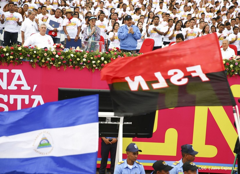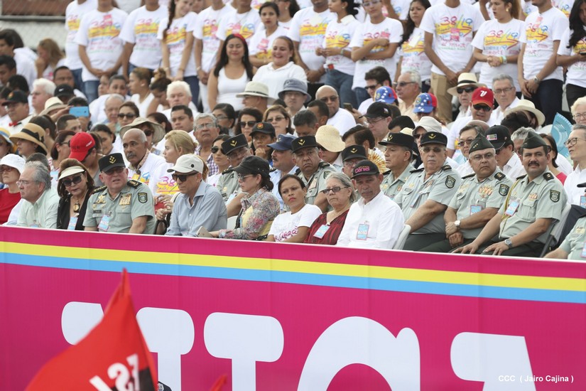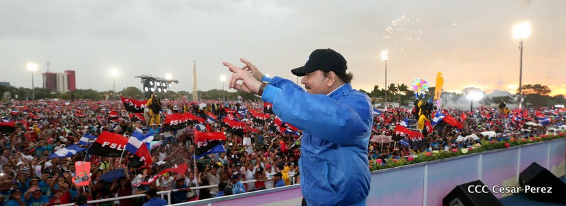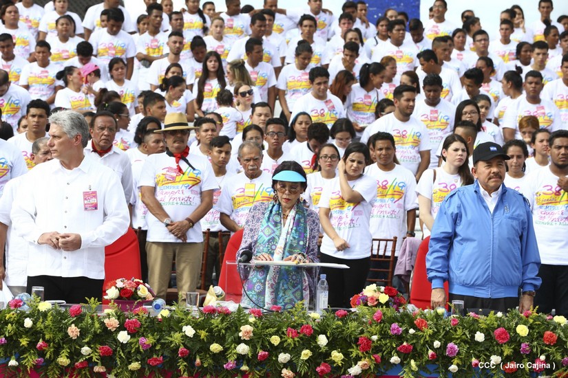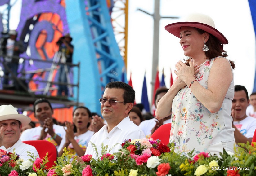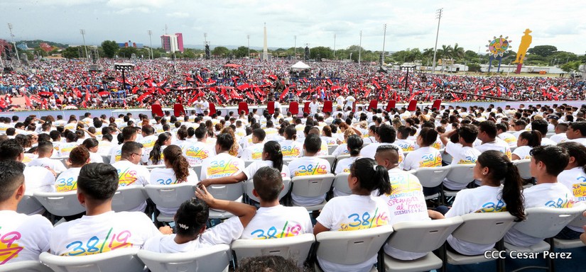 El Comandante-Presidente Daniel Ortega Saavedra y la Compañera-Vicepresidenta Rosario Murillo, celebraron junto al pueblo nicaragüense el 38 aniversario del triunfo de la Revolución Popular Sandinista en la Plaza de la Fe "San Juan Pablo II".