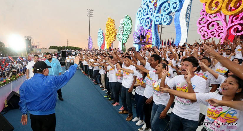 Rosario y Daniel celebran junto al pueblo 38 años de Revolución
