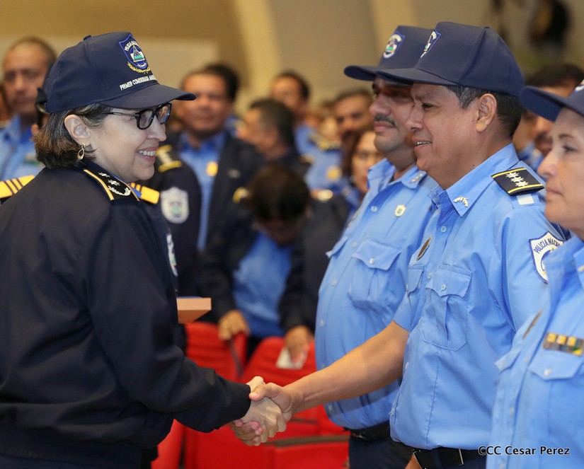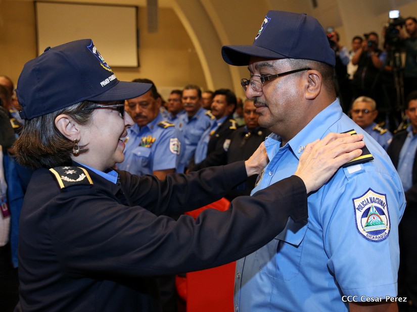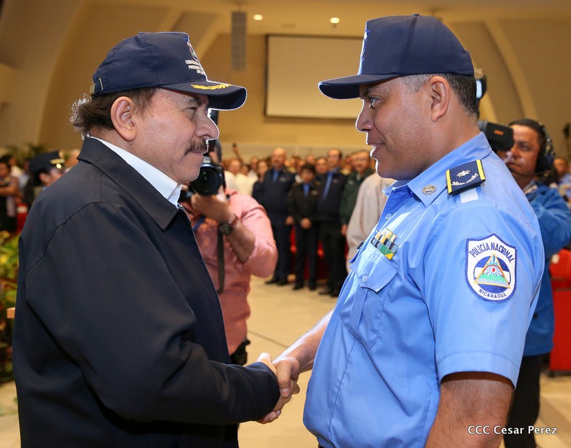 El Presidente de Nicaragua, Comandante Daniel Ortega y la Compañera Rosario Murillo, Vicepresidenta de la República, presidieron el Acto del 38 Aniversario de fundación de la Policía Nacional.