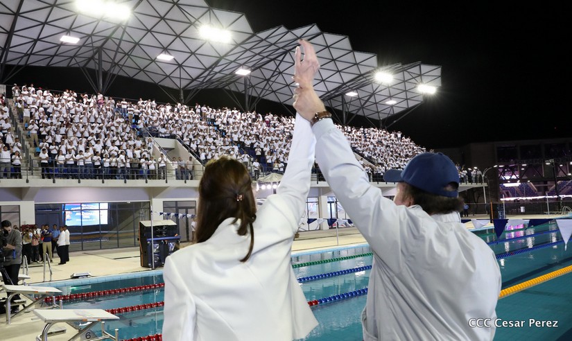 El Presidente Daniel Ortega y la Compañera Rosario Murillo, participaron este viernes 1 de diciembre en la inauguración del Complejo de Piscinas Olímpicas que llevan el nombre de Michele Richardson, destacada atleta nicaraguense.