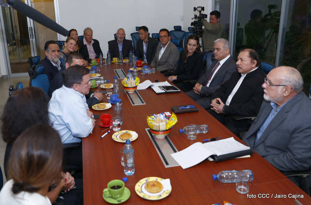 El Presidente de la República, Comandante Daniel Ortega Saavedra, sostuvo un encuentro la tarde de este miércoles con una delegación de empresarios y productores de azúcar que participan en Nicaragua en la Semana Bonsucro 2018.