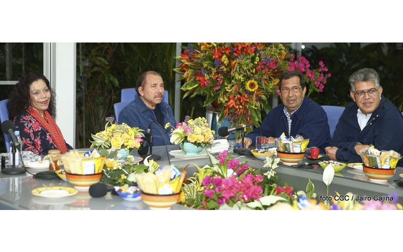 El Presidente de la República Comandante Daniel Ortega Saavedra y la Vicepresidenta Compañera Rosario Murillo, sostuvieron un encuentro fraterno con los compañeros Adán Chávez Frías y Elias Jaua, de Venezuela.