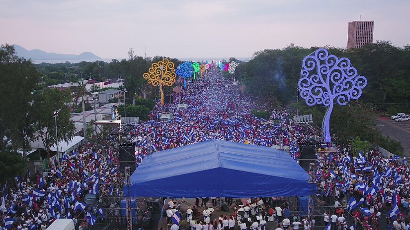 Cientos de miles de nicaragüenses, se concentraron este miércoles en la emblemática Avenida de Bolívar a Chávez, unidos en un solo Canto por la Paz y el Cariño, ondeando sus banderas azul y blanco y rojinegro, por el Diálogo, el Amor y el Trabajo en esta hermosa Nicaragua.