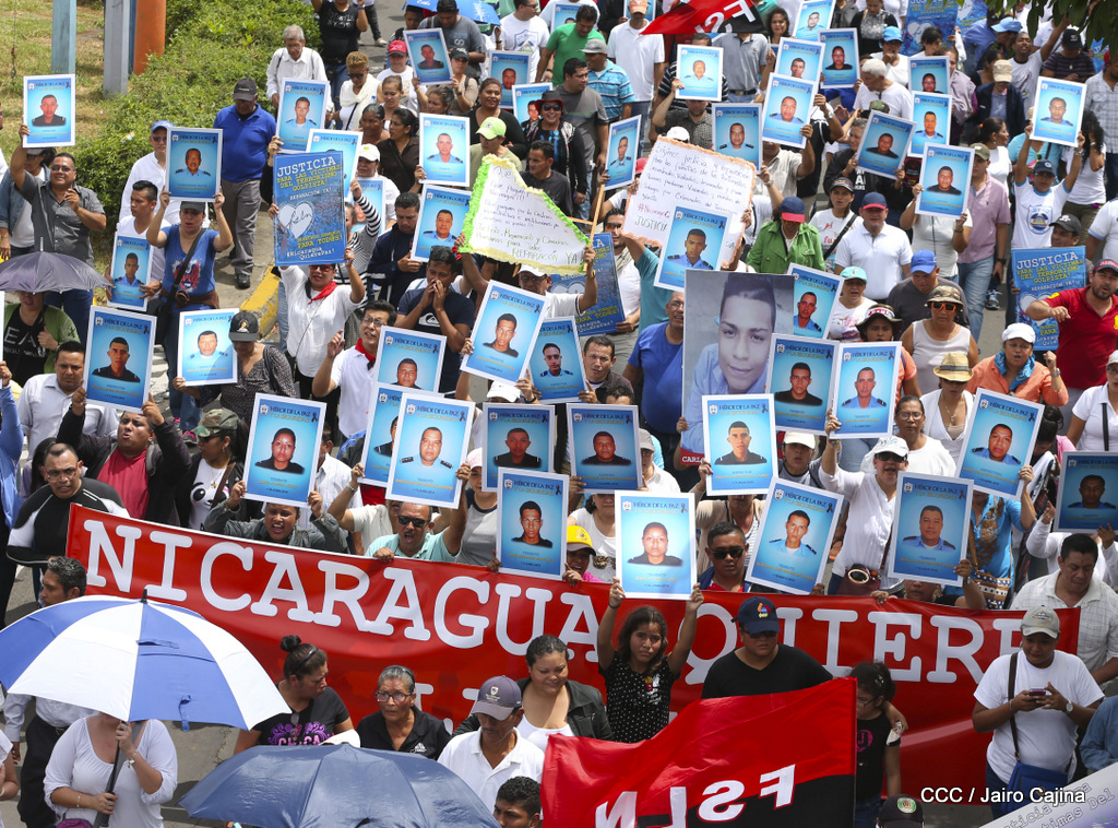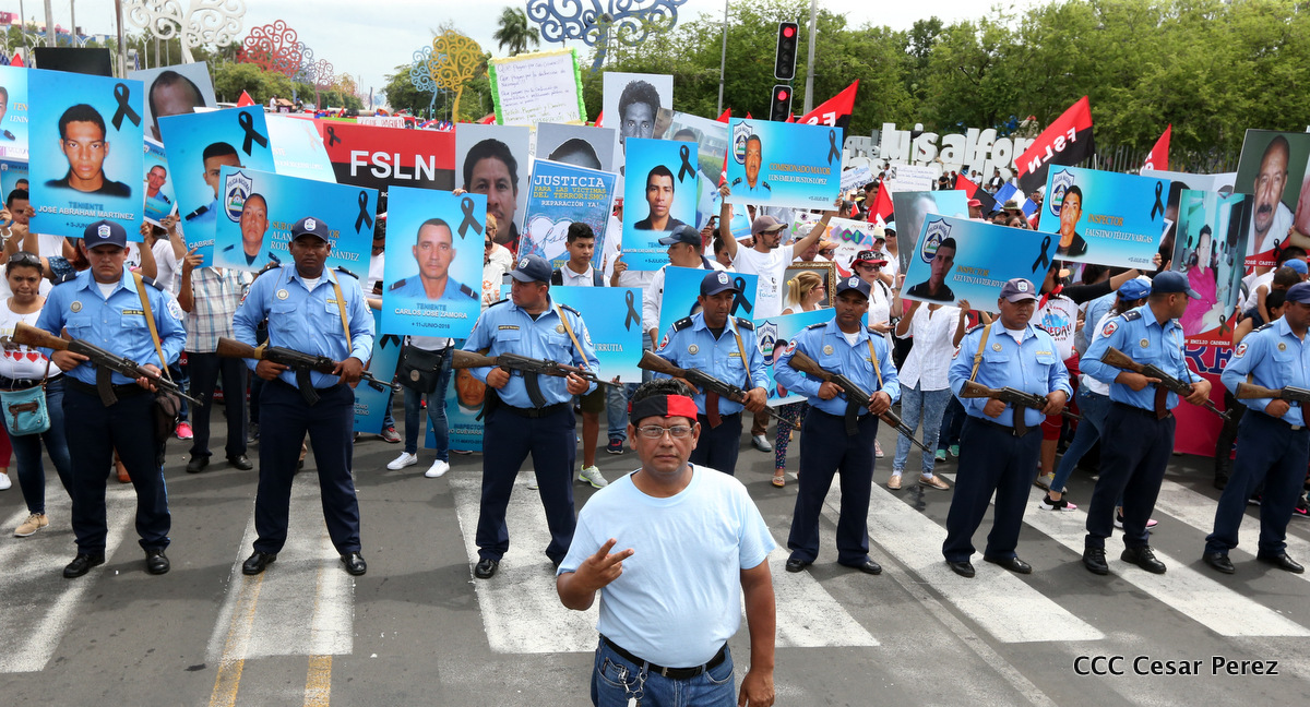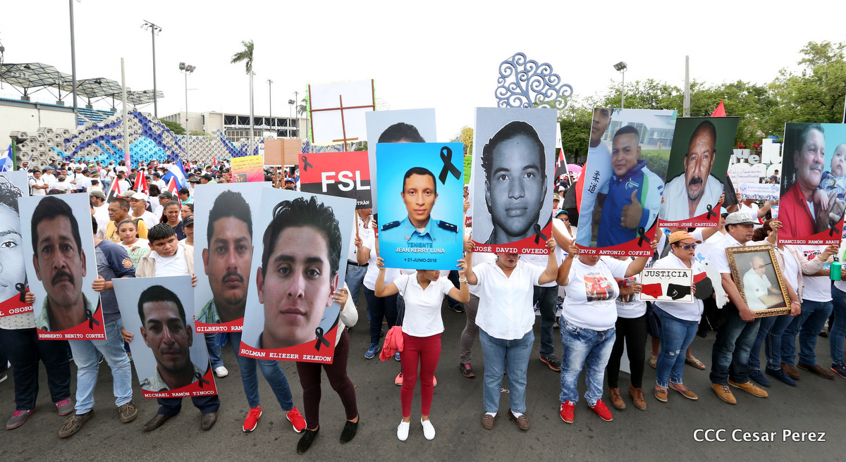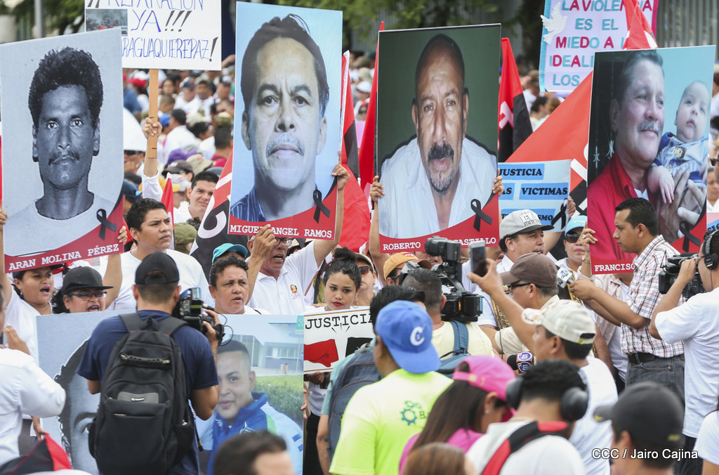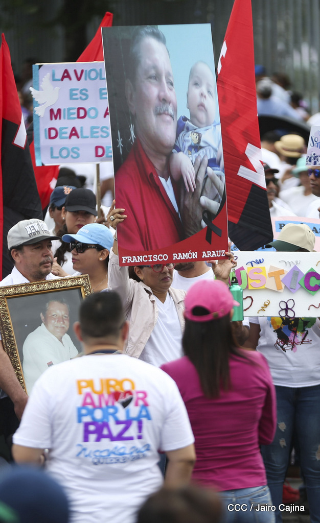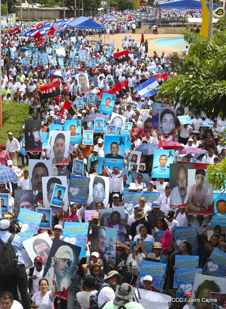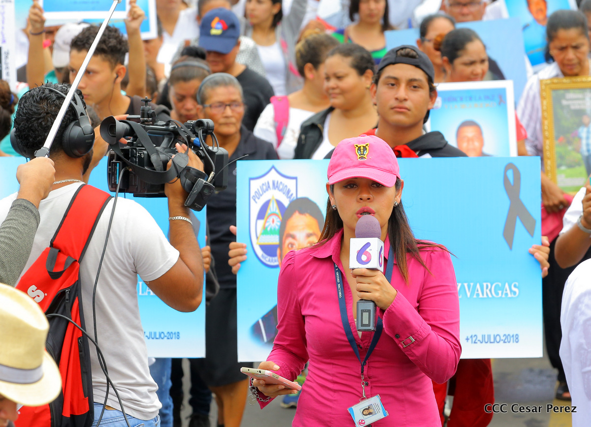 Con mensajes llamando a la paz y a la no violencia, e imágenes de las víctimas, los nicaragüenses exigieron este sábado 21 de julio justicia y reparación para las familias que han sufrido las acciones criminales del Terrorismo Golpista. Miles recorrieron las calles en la llamada Caminata Justicia para las Víctimas del Terrorismo, la cual partió de los semáforos de la Asamblea Nacional en la Avenida de Bolívar a Chávez.