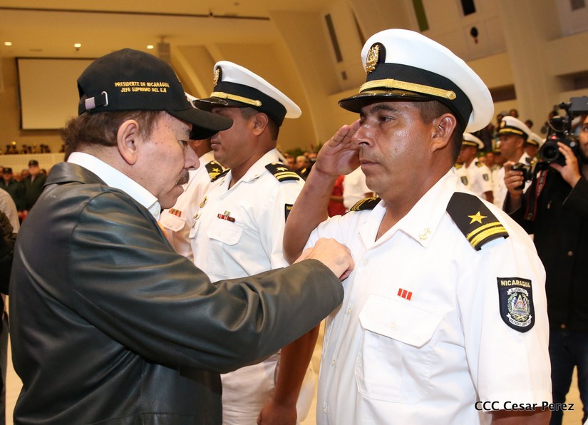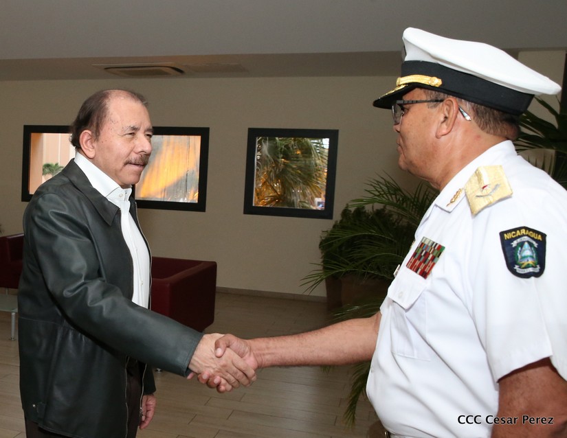 El Presidente de la República, Comandante Daniel Ortega y la Vicepresidenta Compañera Rosario Murillo, presidieron este lunes junto a la Comandancia General del Ejército de Nicaragua, el acto conmemorativo del 38 aniversario de constitución de la Fuerza Naval.