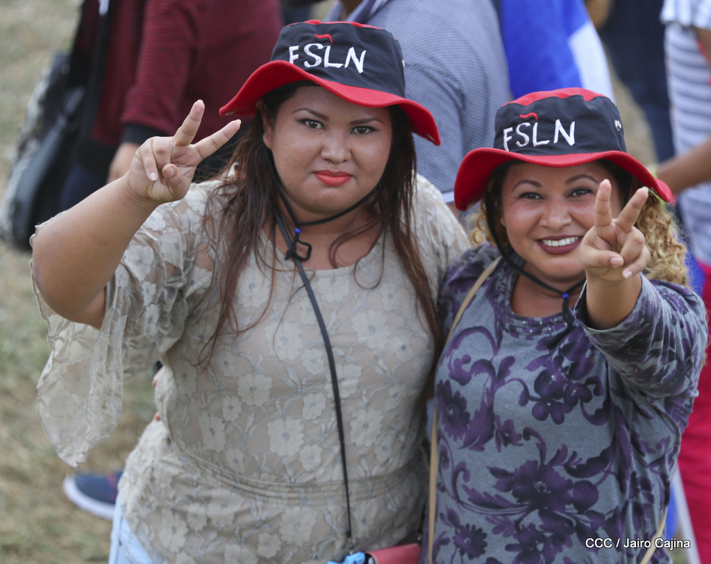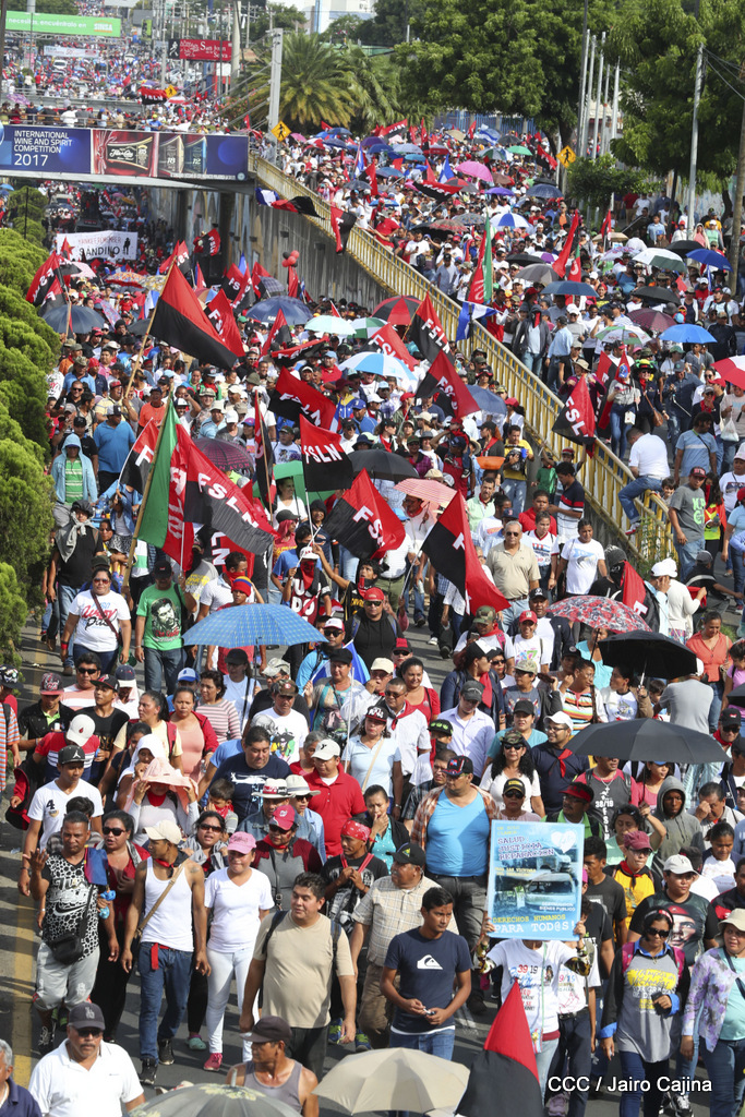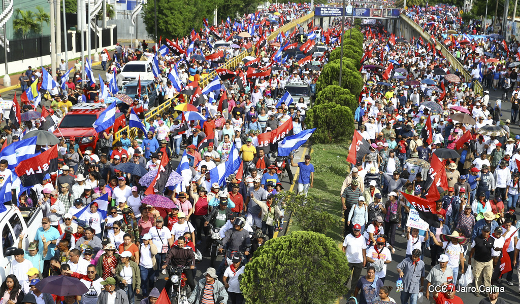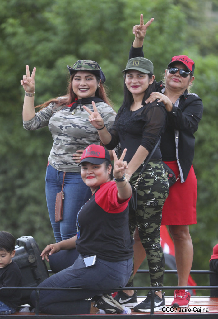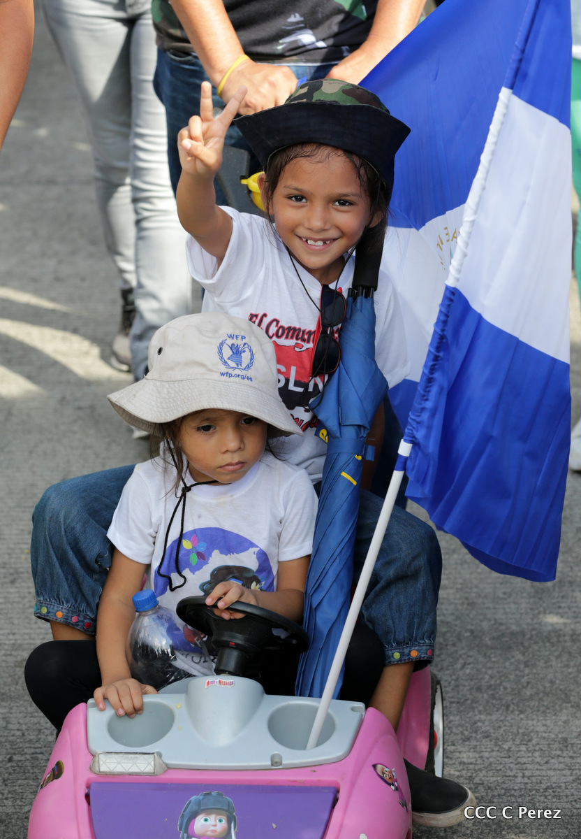 Desde la rotonda Jean Paul Genie cientos de miles de nicaragüenses caminaron hasta llegar a la Avenida de Bolívar a Chávez, en respaldo al Gobierno del Comandante Daniel Ortega y la Compañera Rosario Murillo y en solidaridad con quienes perdieron a un amigo, a un familiar o un compañero de trabajo. Miles recorrieron las principales arterias de la ciudad pidiendo justicia y reparación para las víctimas del terrorismo.