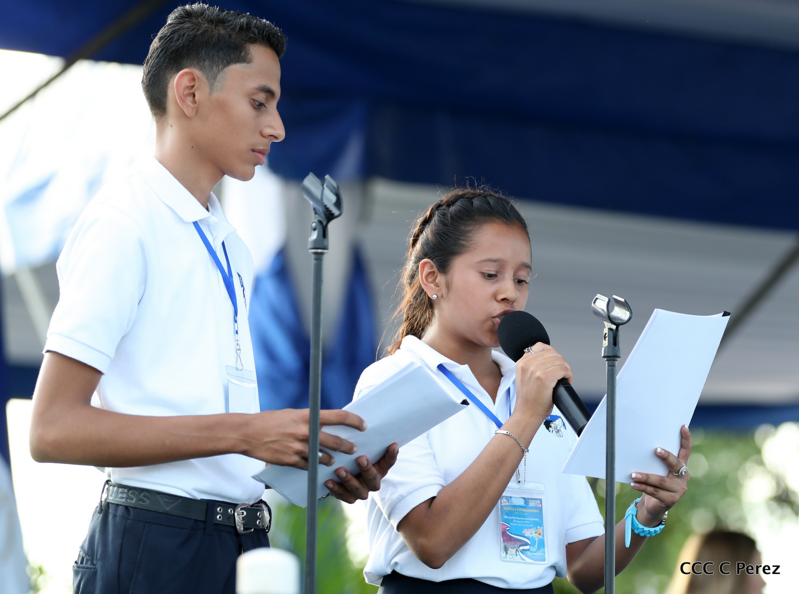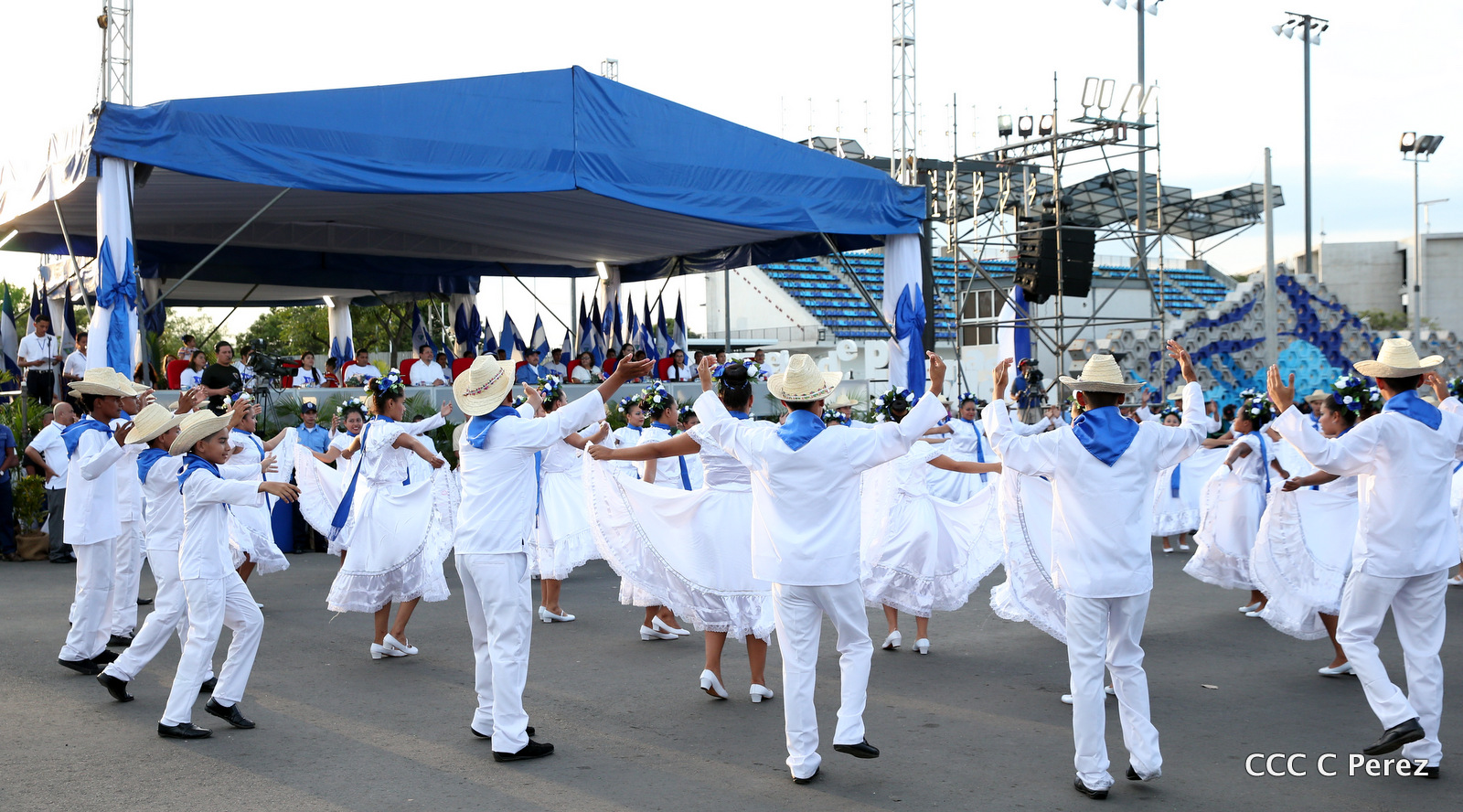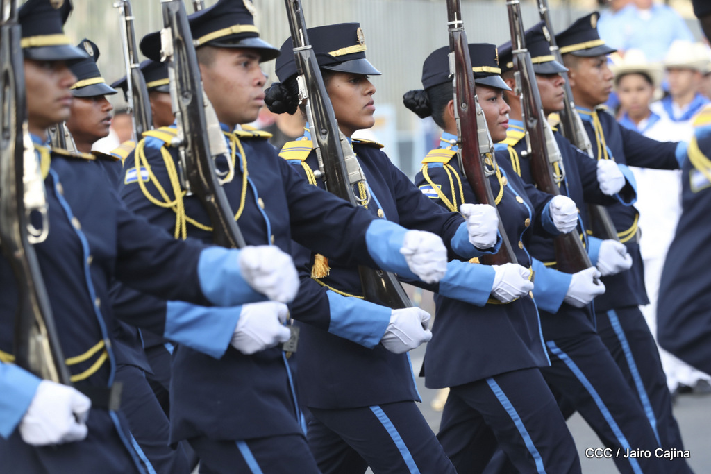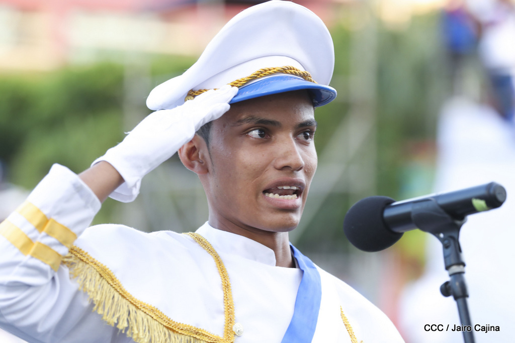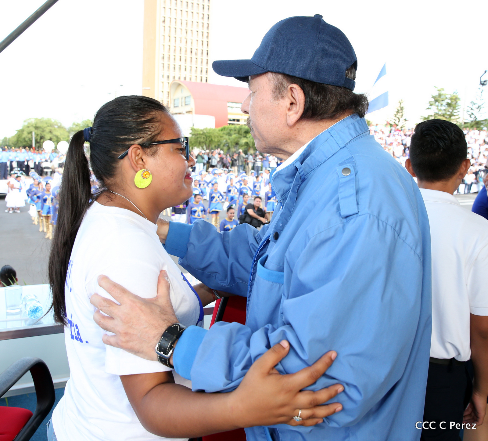 El Comandante Daniel Ortega y Compañera Rosario Murillo presidieron el desfile patrio 2018. Estos Jóvenes que han desfilado en todo el país, celebrando nuestra Independencia y el heroísmo de la Batalla de San Jacinto. Estos jóvenes, generación del Bicentenario, serán artífices, protagonistas y testigos de esa Nicaragua que prosperará, y prosperar quiere decir también crecer en Justicia, crecer en Capacidad de Amor al Prójimo.