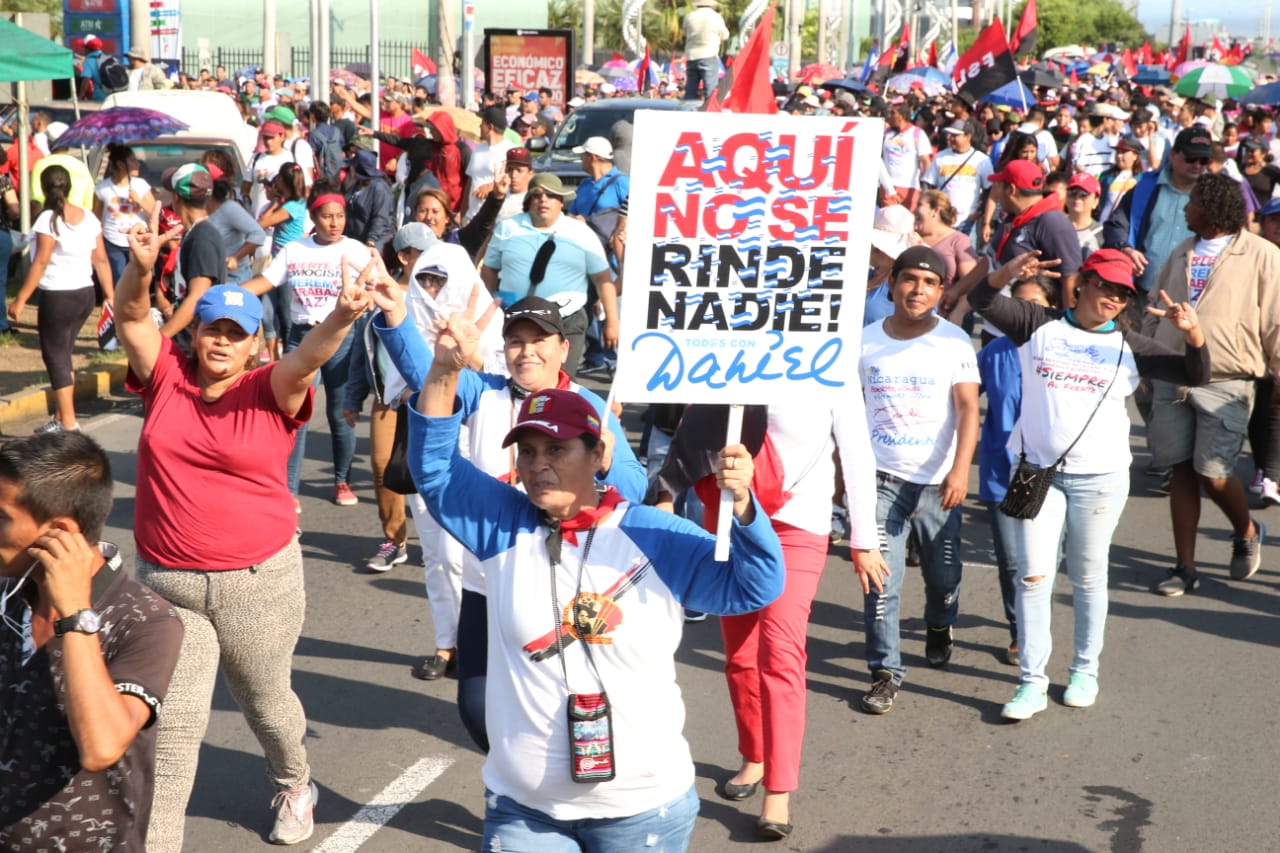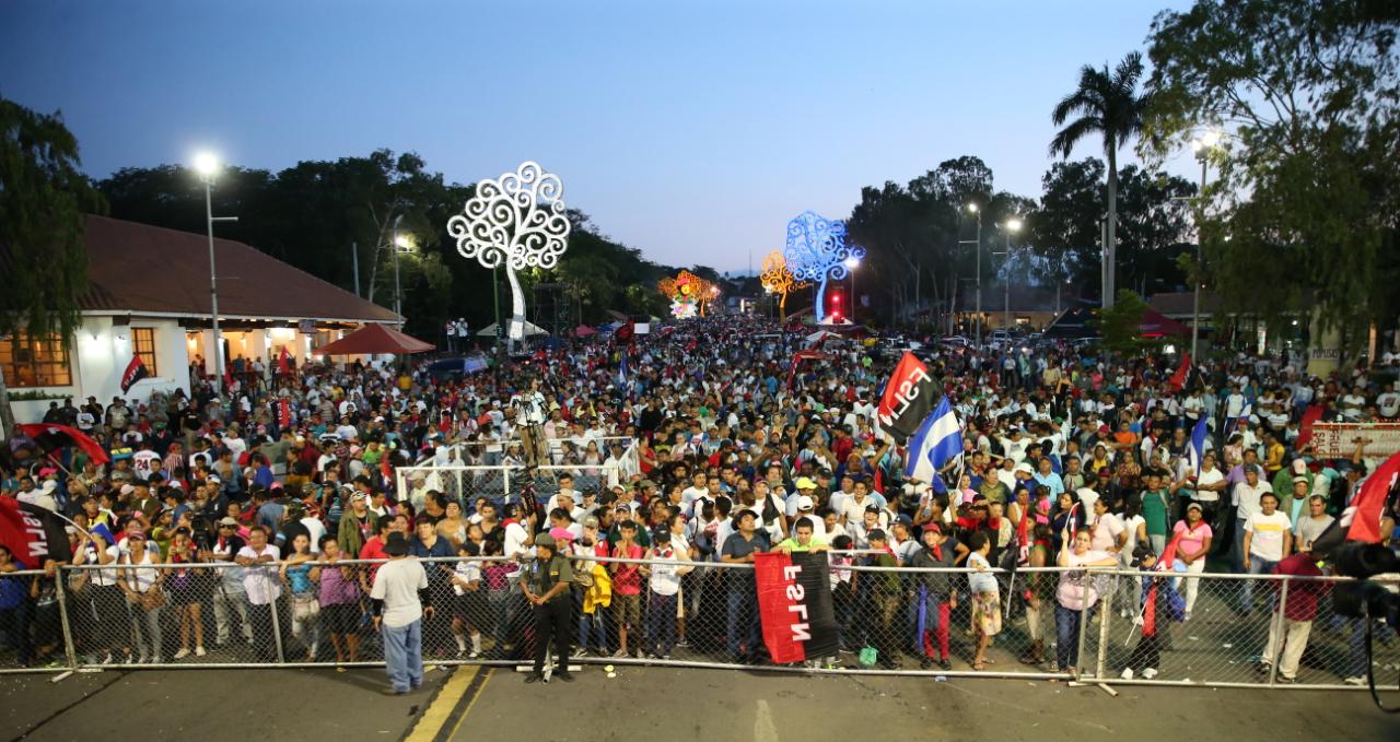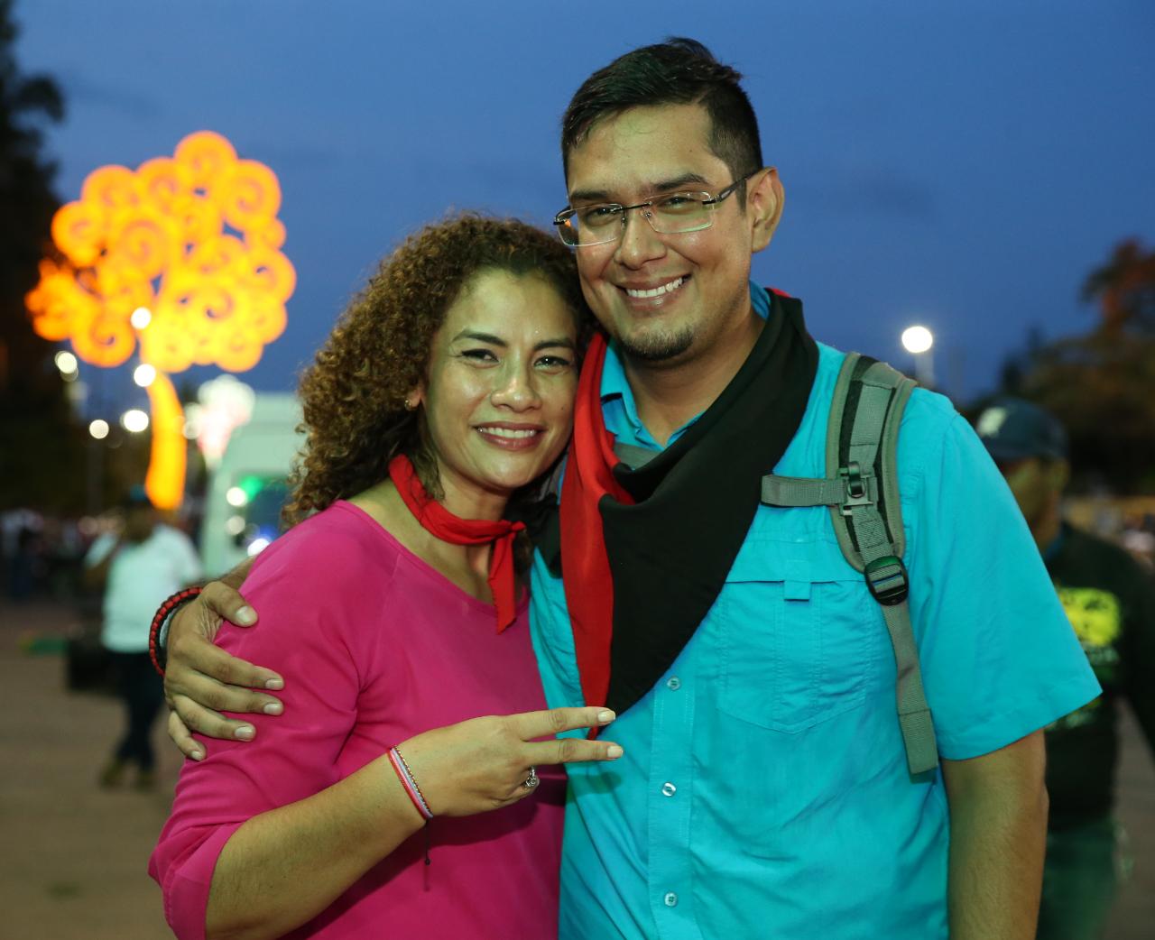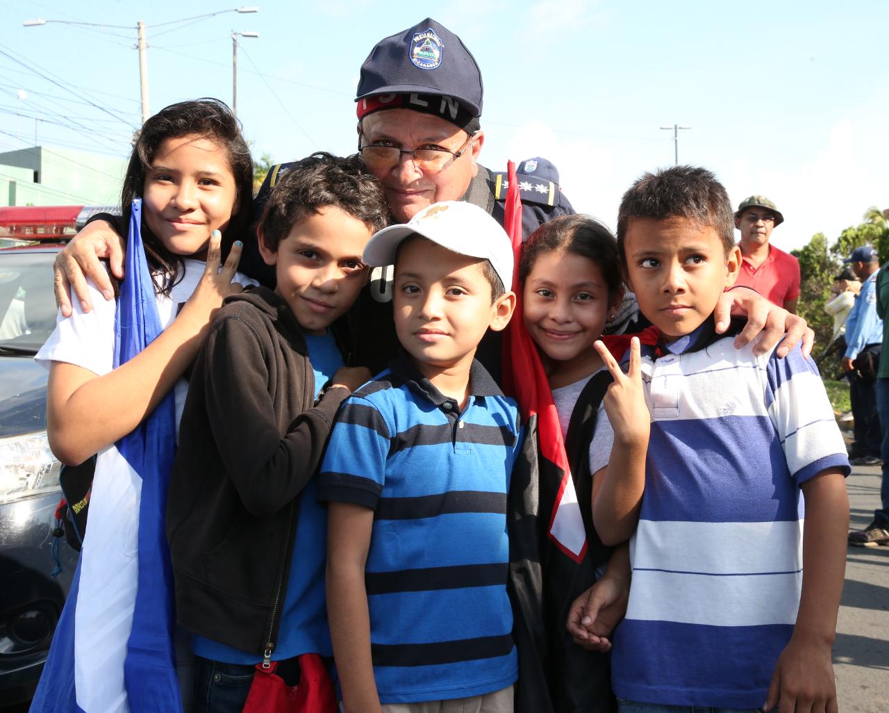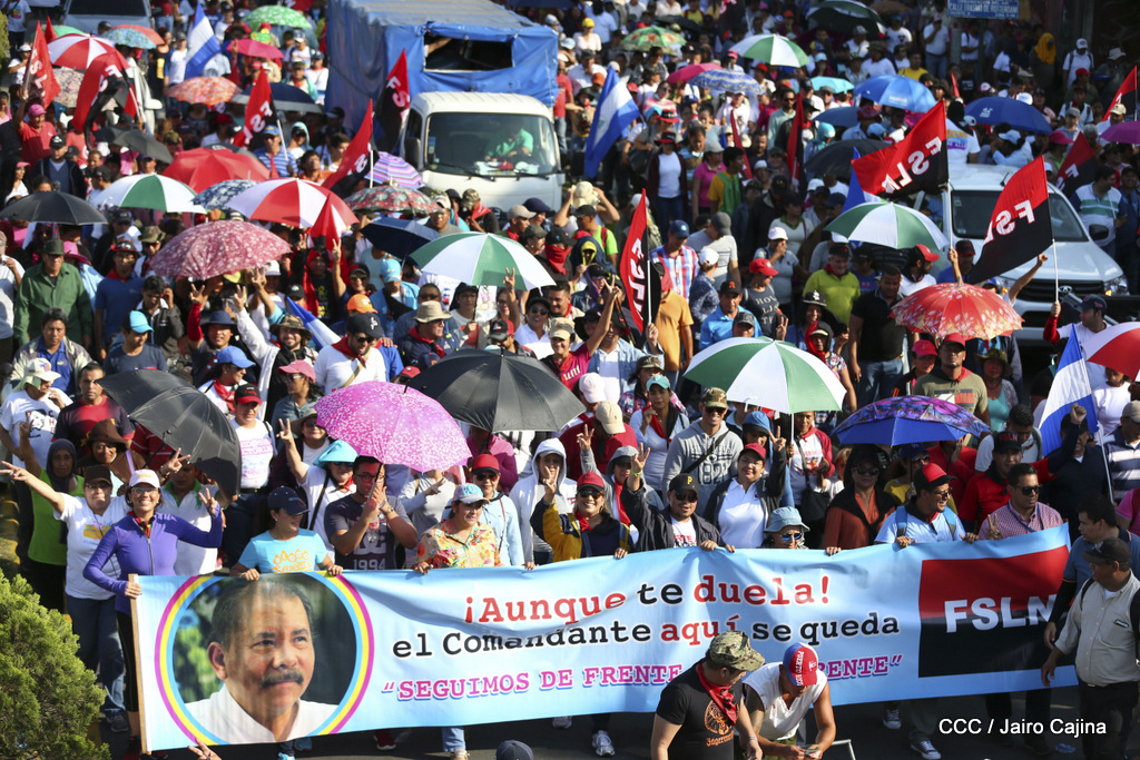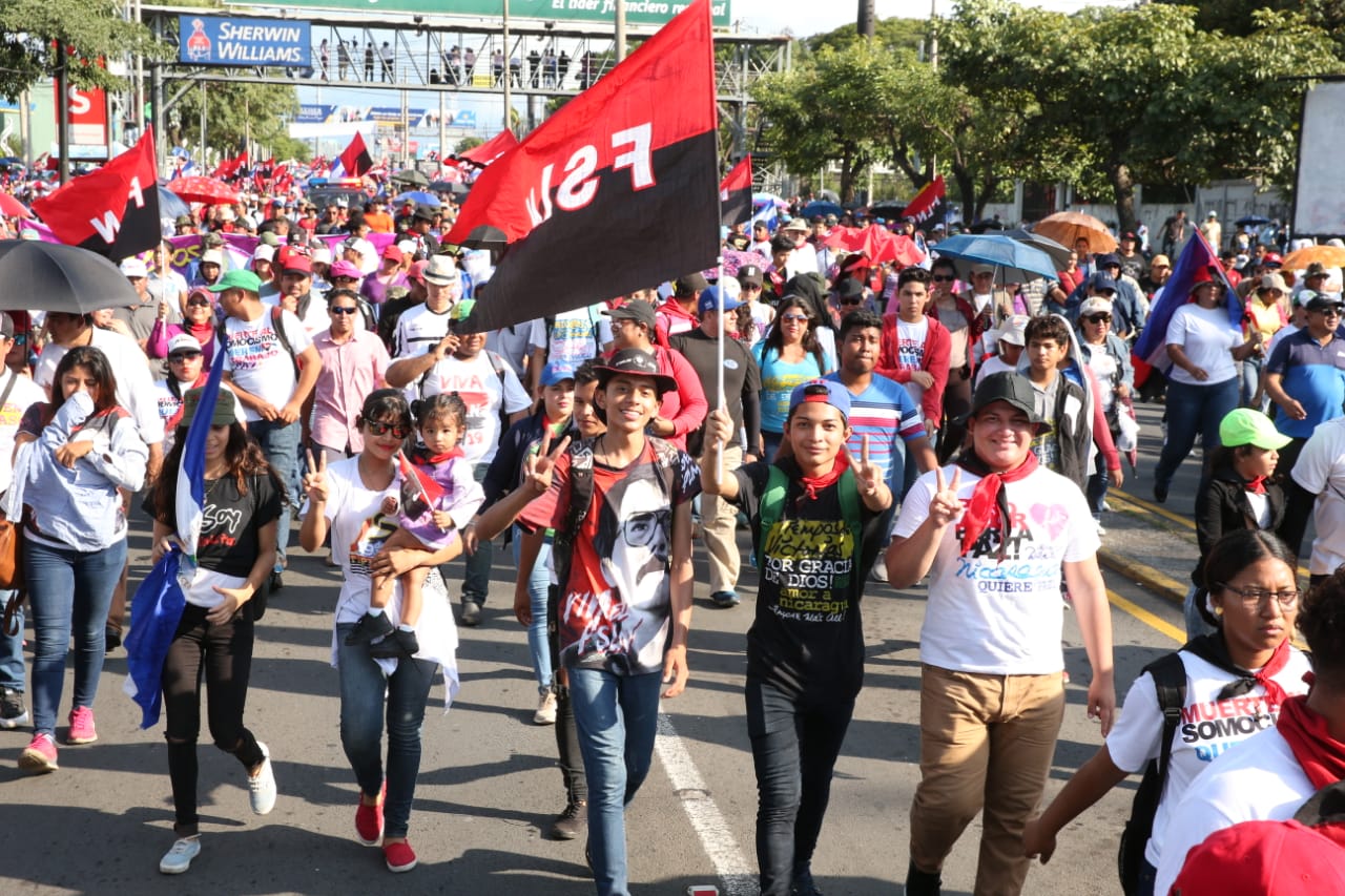 Miles de nicaragüenses marcharon este miércoles por la tarde desde la rotonda Jean Paul Genie hasta la Avenida de Bolívar y Chávez, donde fueron recibidos por nueve alcaldes de Managua, encabezados por la compañera Guiomar Irías, presidente ejecutiva de INIFOM, para ratificar su compromiso por la paz, la justicia y el resurgir de la Nación.