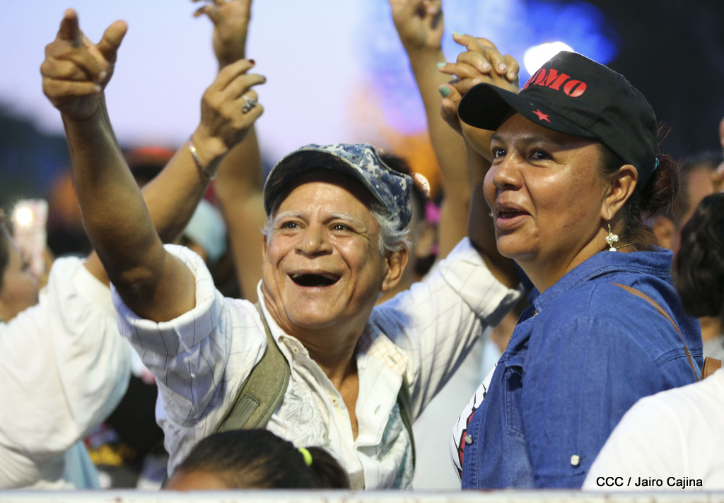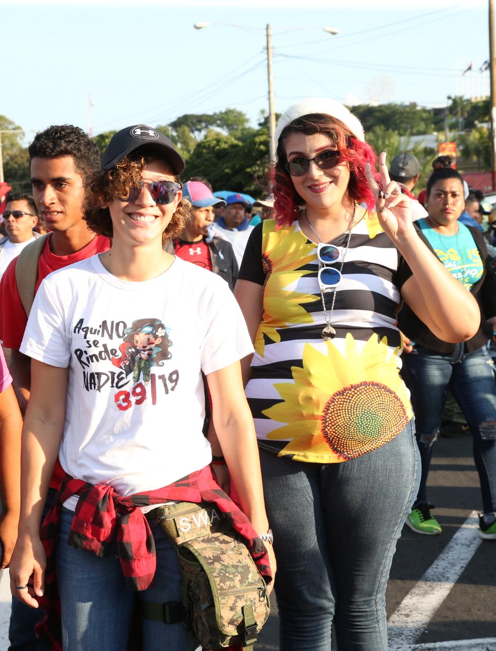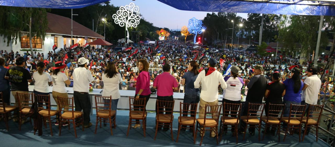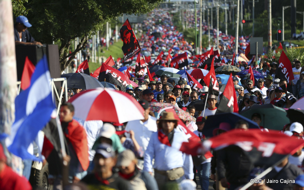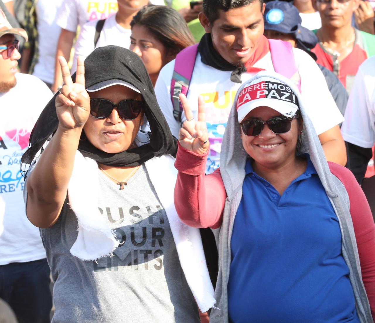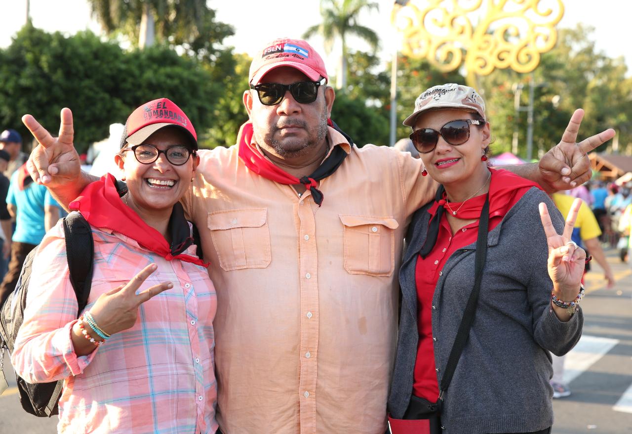 Miles de nicaragüenses marcharon este miércoles por la tarde desde la rotonda Jean Paul Genie hasta la Avenida de Bolívar y Chávez, donde fueron recibidos por nueve alcaldes de Managua, encabezados por la compañera Guiomar Irías, presidente ejecutiva de INIFOM, para ratificar su compromiso por la paz, la justicia y el resurgir de la Nación.