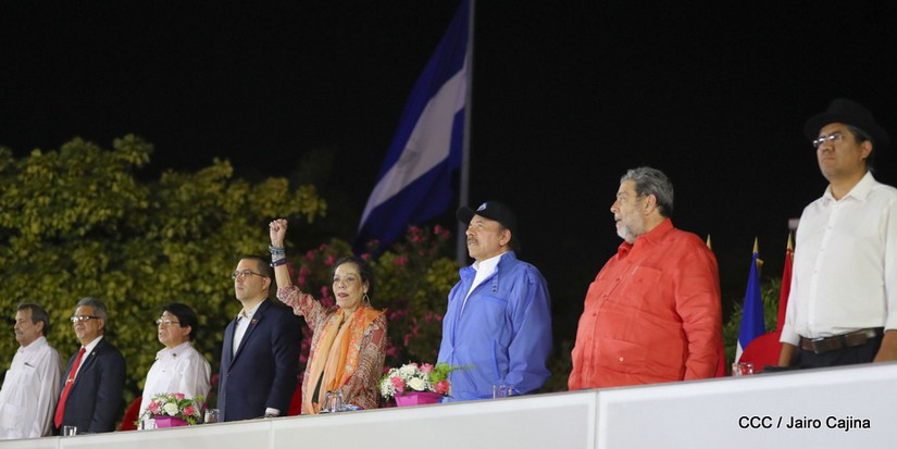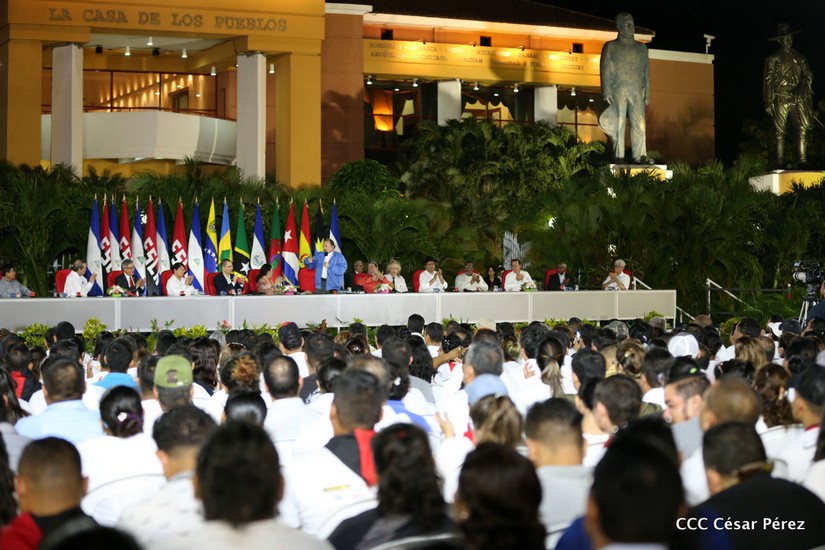 El Presidente de la República, Comandante Daniel Ortega y la Vicepresidenta compañera Rosario Murillo, acompañados de los cancilleres participantes en la XVII Reunión Ordinaria del Consejo Político de la Alianza Bolivariana de los Pueblos (ALBA- TCP), presidieron el homenaje al Comandante Carlos Fonseca Amador, en el 42 aniversario de su tránsito a la inmortalidad.