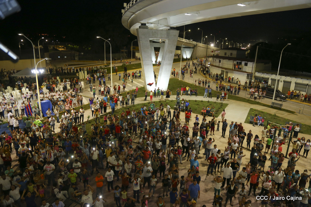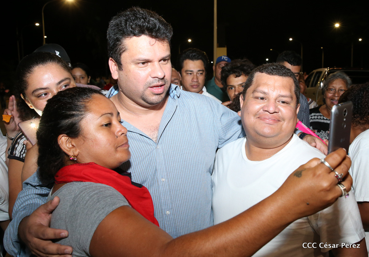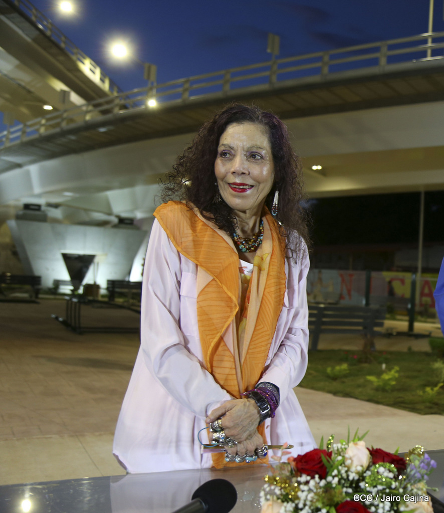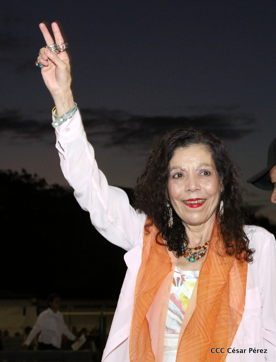 Fíjense cómo cambia Managua y en qué tiempos está cambiando Managua y con qué gobierno está cambiando Managua. De Las Piedrecitas al Luis Alfonso Velásquez, al Salvador Allende, a la avenida de Bolívar a Chávez, al Estadio Denis Martínez, al Estadio de Fútbol, al Polideportivo Alexis Argüello, al Centro de Piscinas Michel Richardson, al Paseo Xolotlán. ¡Cómo va cambiando Managua, y todos los parques liceos deportivos que tenemos en los barrios de Managua y en los departamentos de nuestro país, es decir creciendo Nicaragua en todos los campos!