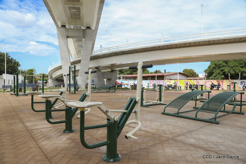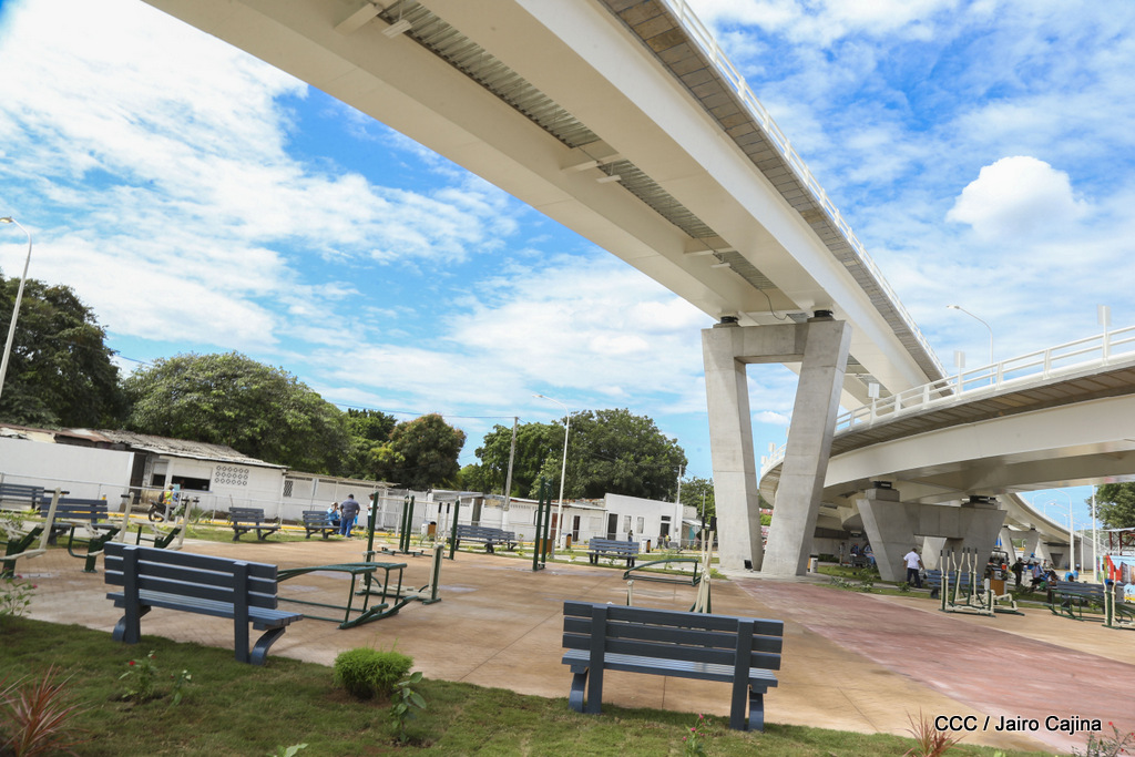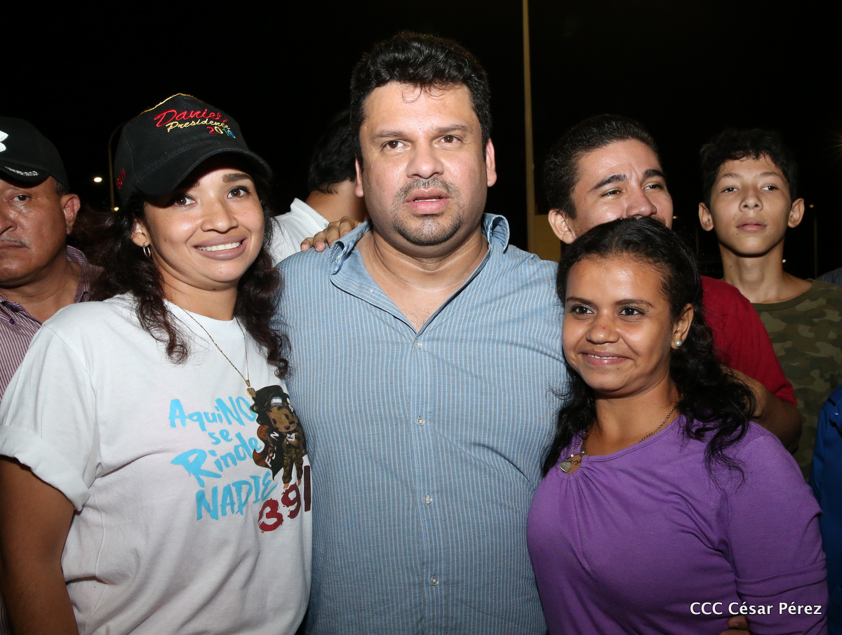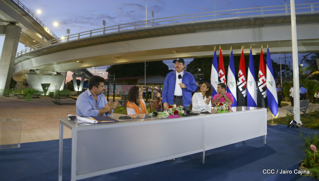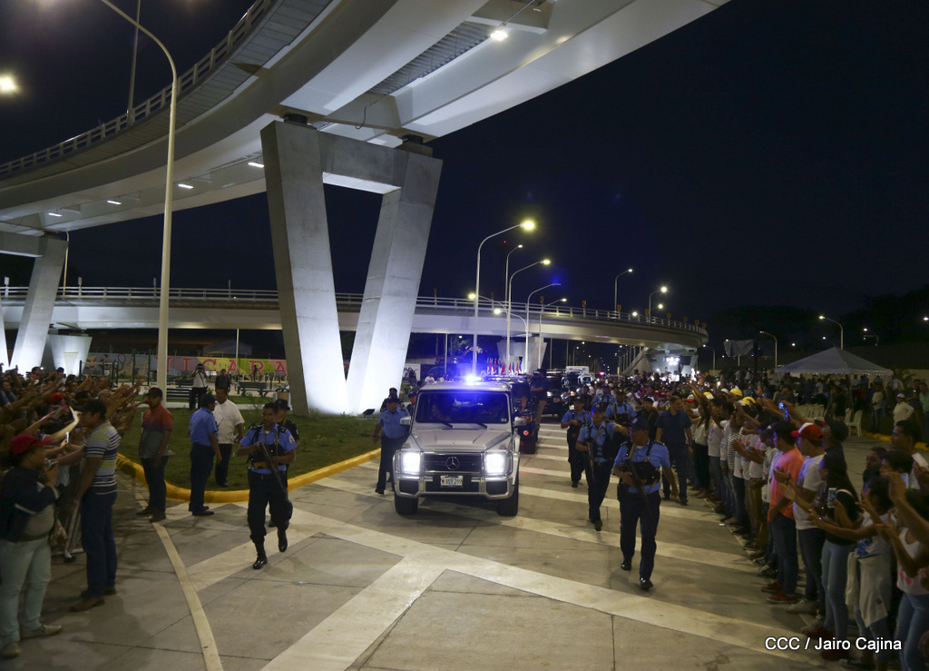 Fíjense cómo cambia Managua y en qué tiempos está cambiando Managua y con qué gobierno está cambiando Managua. De Las Piedrecitas al Luis Alfonso Velásquez, al Salvador Allende, a la avenida de Bolívar a Chávez, al Estadio Denis Martínez, al Estadio de Fútbol, al Polideportivo Alexis Argüello, al Centro de Piscinas Michel Richardson, al Paseo Xolotlán. ¡Cómo va cambiando Managua, y todos los parques liceos deportivos que tenemos en los barrios de Managua y en los departamentos de nuestro país, es decir creciendo Nicaragua en todos los campos!
