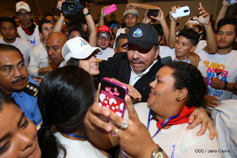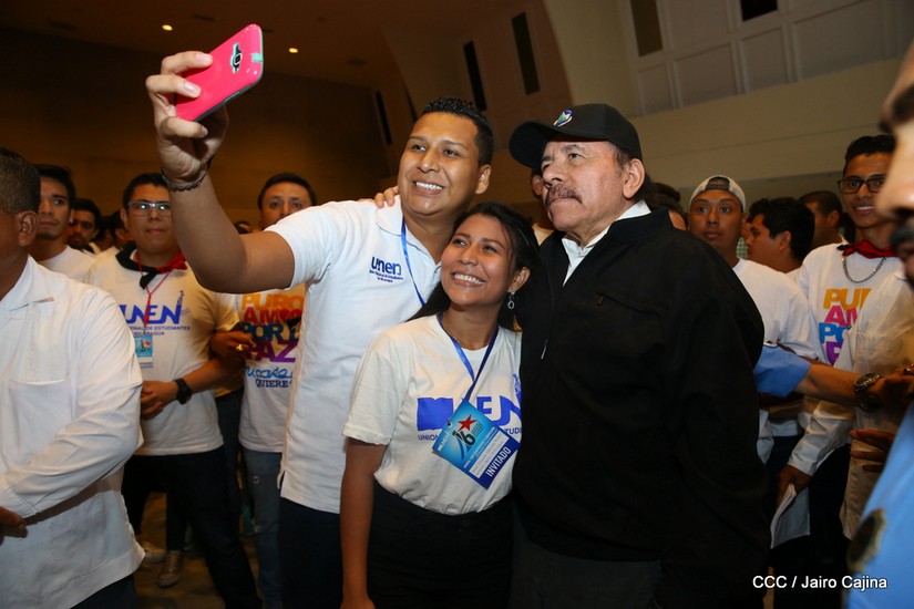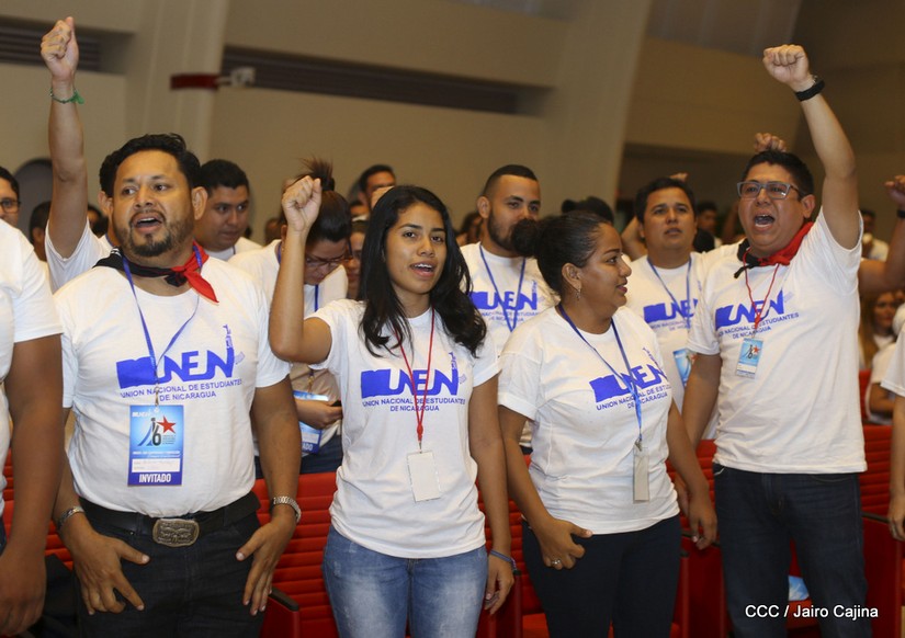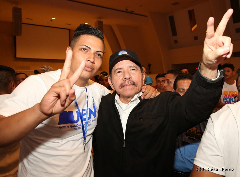 El Presidente de la República, comandante Daniel Ortega Saavedra y la vicepresidenta compañera Rosario Murillo, presidieron la noche de este lunes la clausura del XVI Congreso de la Unión Nacional de Estudiantes de Nicaragua (UNEN).