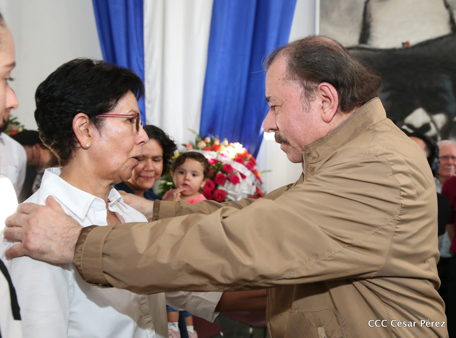 El presidente Daniel Ortega y la compañera vicepresidenta Rosario Murillo, despidieron este lunes 3 de junio al comandante Raúl Venero y el mandatario le otorgó póstumamente la Orden General de Hombres Libres Augusto C. Sandino, la que le fue entregada a su viuda María Félix Fernández.