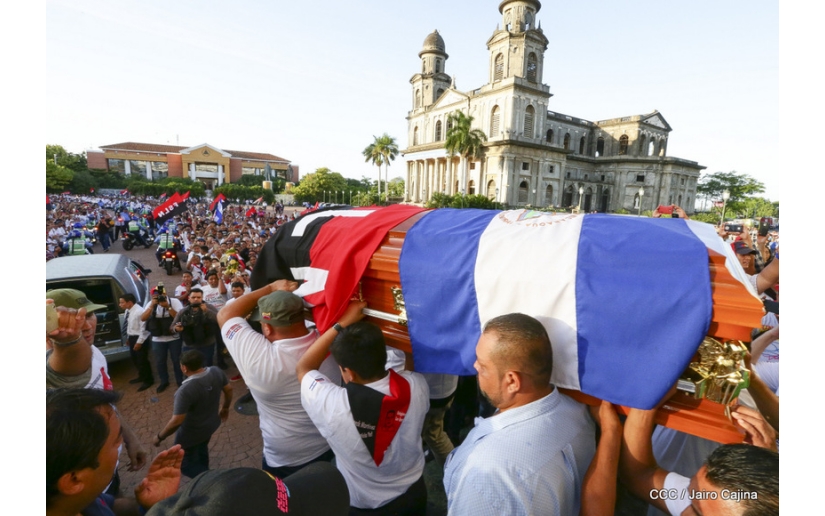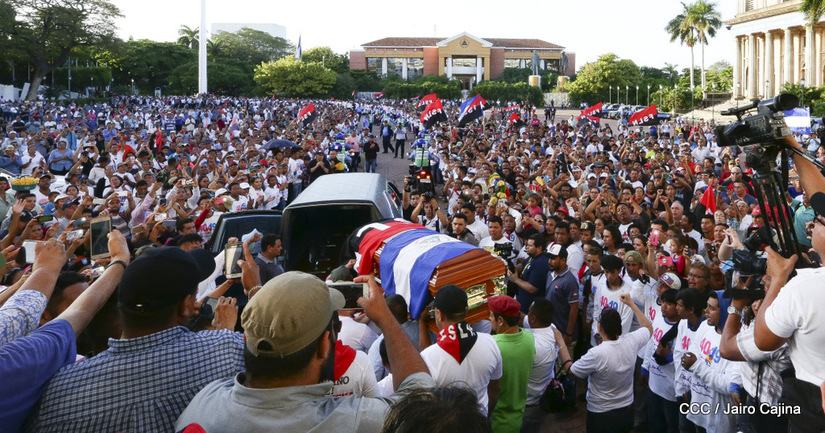 La tarde de este jueves 6 de junio el Comandante Daniel Ortega y la compañera Rosario Murillo presidieron el homenaje póstumo que se realizó en el Palacio de la Cultura al héroe de la amor, la paz y las victorias, compañero Bismarck Martínez.