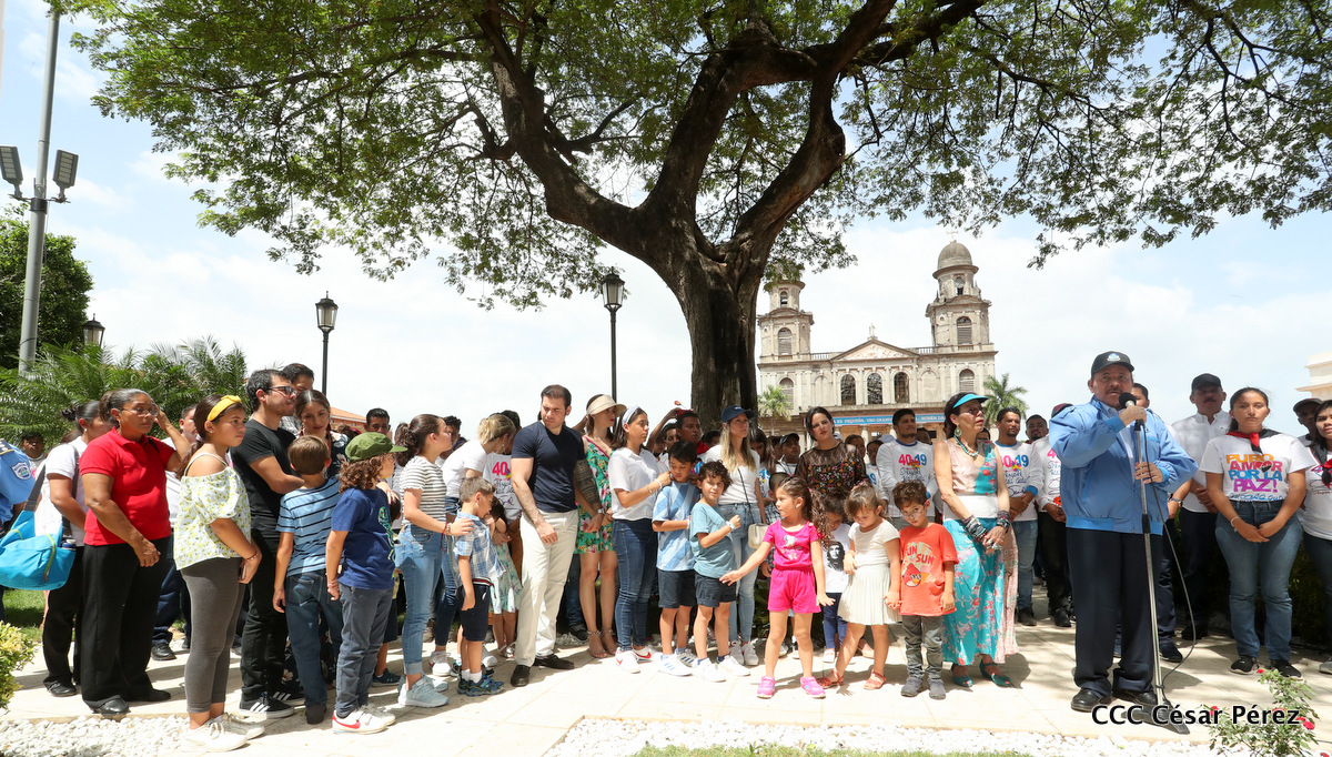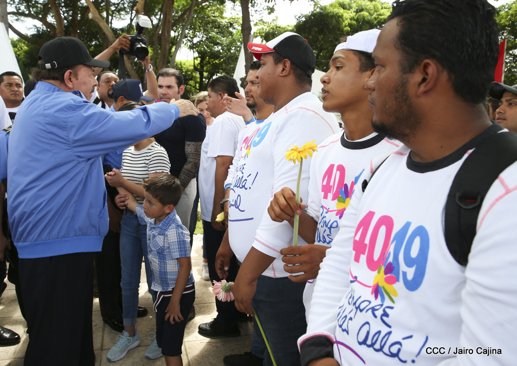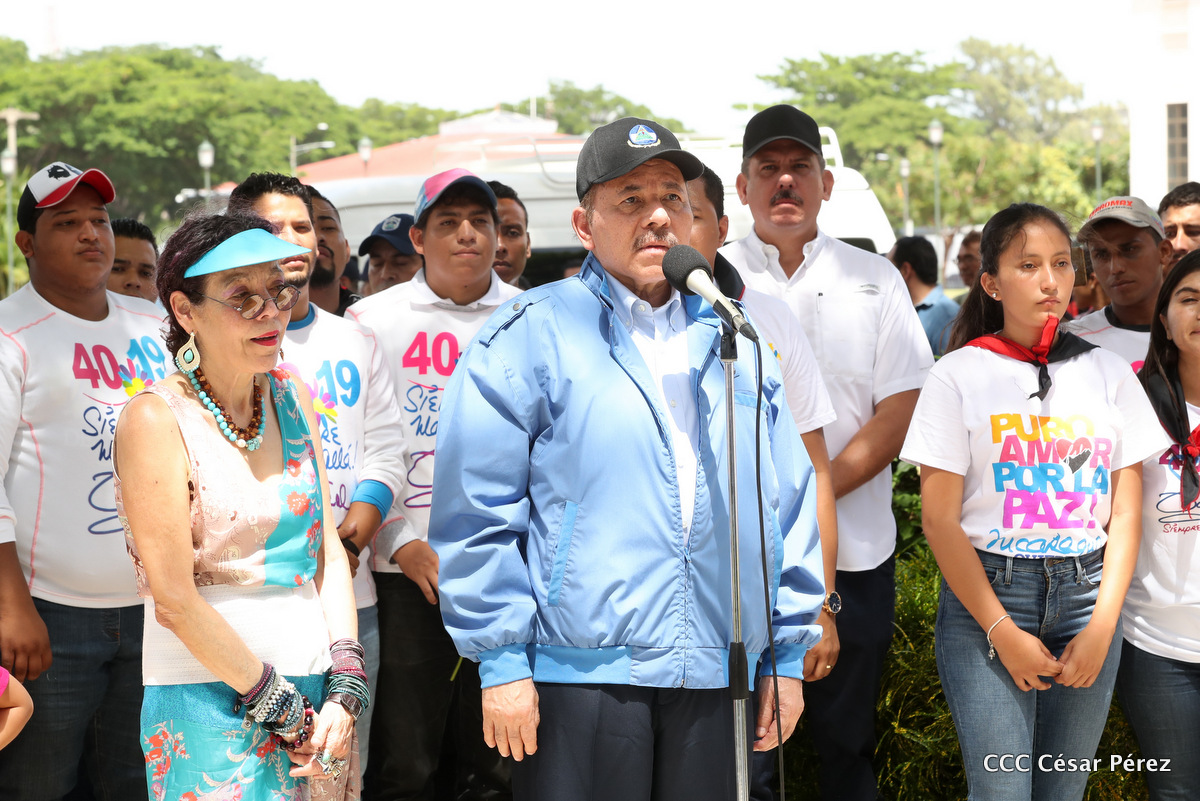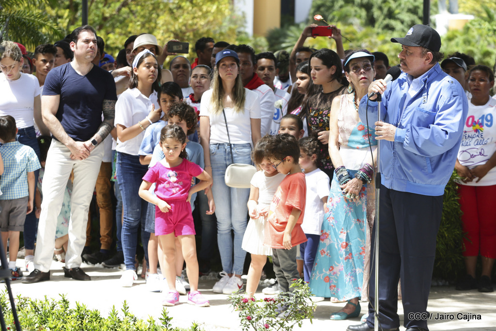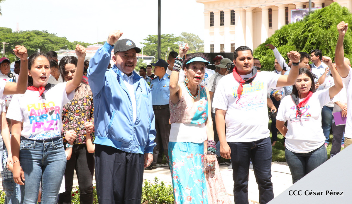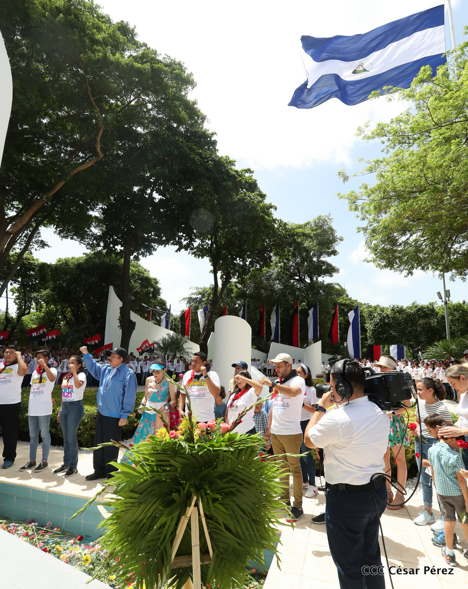 "Hoy en el aniversario de su nacimiento le decimos a Carlos que aquí estamos siempre luchando por la paz, porque queremos la paz, no queremos confrontación no queremos guerra, la paz que tantos nos ha costado conquistar, que tanto nos ha costado alcanzar, cuantos héroes, cuantos mártires a lo largo de nuestra historia para alcanzar la paz, para conquistar la paz”, reiteró el Comandante Daniel Ortega, Presidente de la República, en el homenaje al Comandante Carlos Fonseca Amador, en celebración del 83 aniversario del natalicio del Padre de la Revolución Popular Sandinista.
