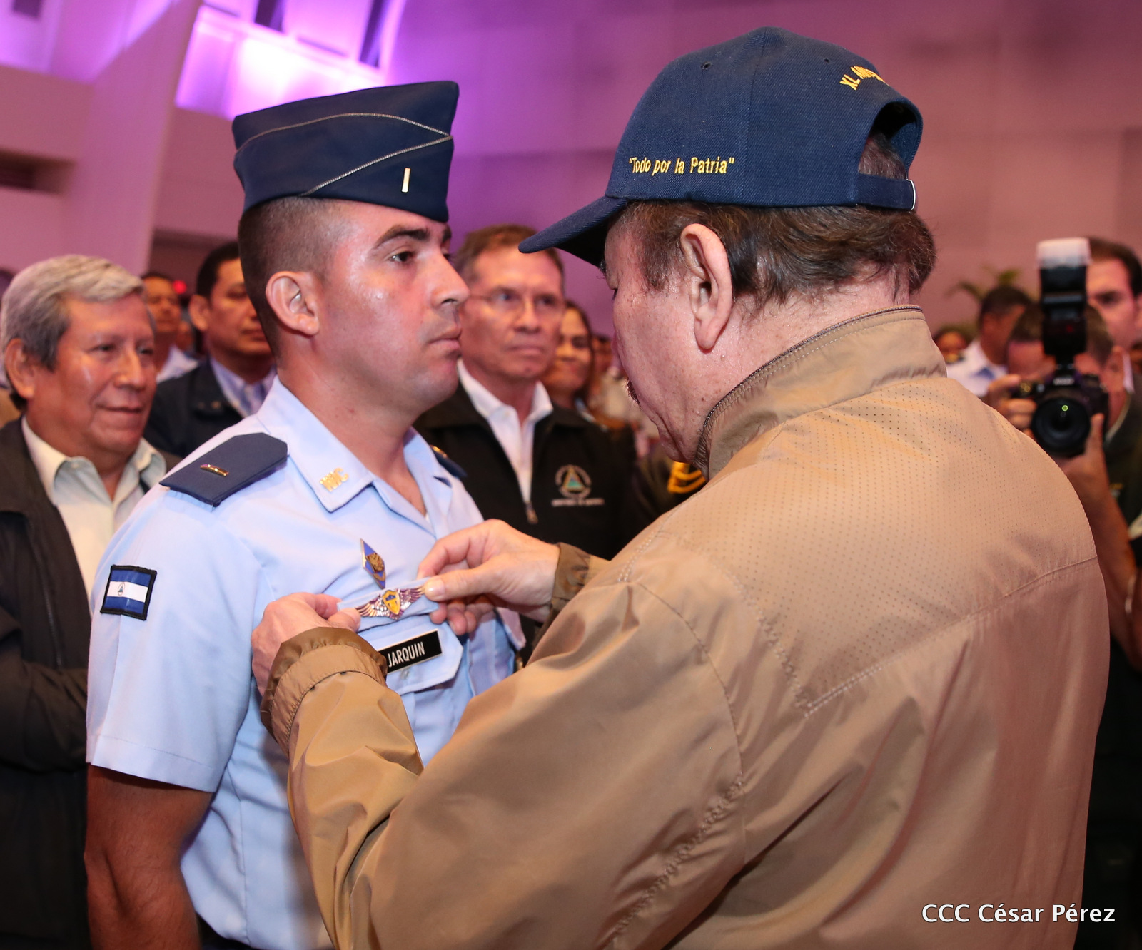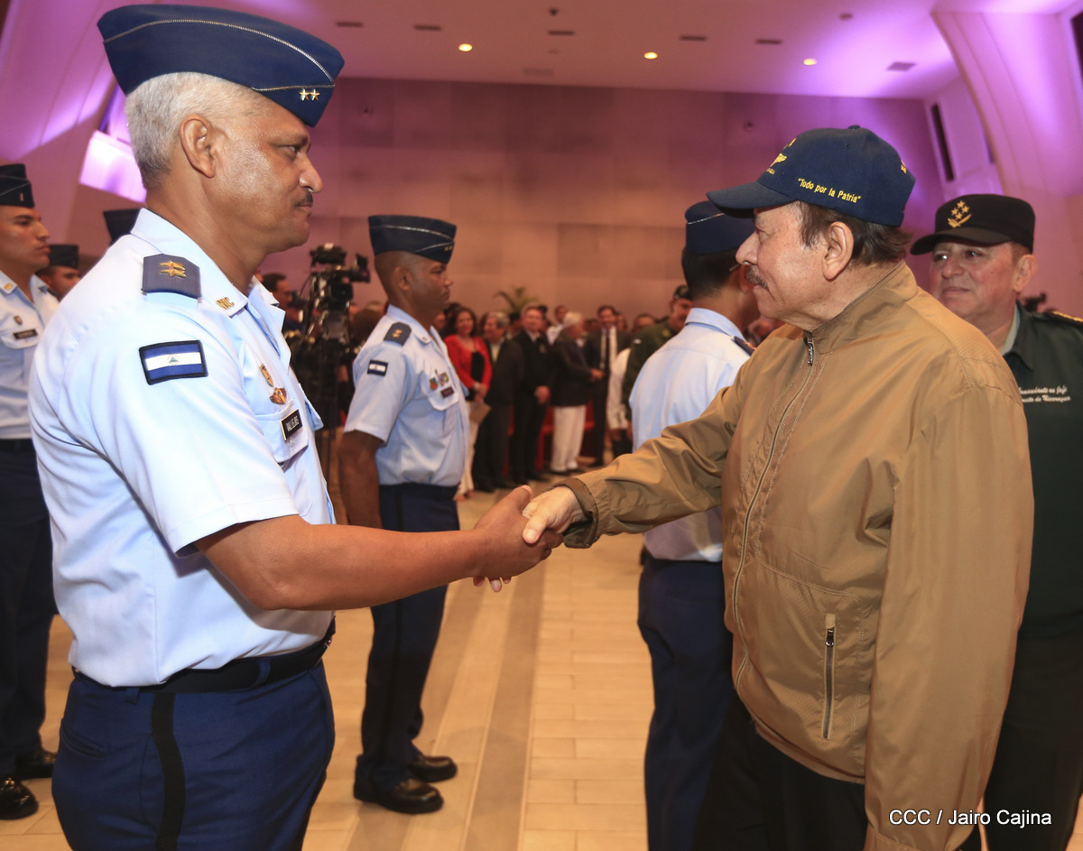 El presidente Daniel Ortega y la vicepresidenta Rosario Murillo, presidieron este miércoles 31 de julio, el acto solemne de conmemoración del 40 Aniversario de constitución de la Fuerza Aérea del Ejército de Nicaragua.