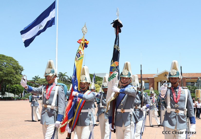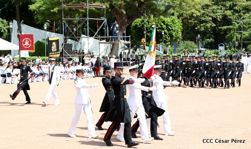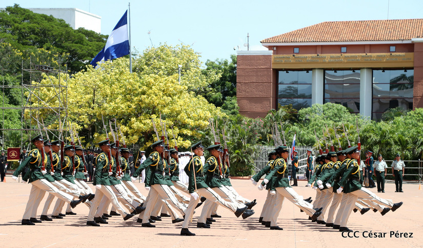 Representantes de academias y fuerzas armadas de países como Taiwán, México, Rusia, Guatemala, Honduras y Venezuela, realizaron una exhibición de movimientos de fantasía en la Plaza de la Revolución, como parte de las celebraciones del 40 aniversario de constitución del Ejército de Nicaragua.