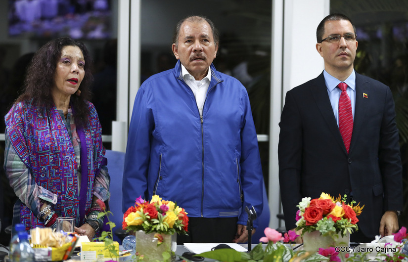 El Presidente Daniel Ortega y la vicepresidenta Rosario Murillo asistieron esta noche a la Octava Reunión Extraordinaria del Consejo Político del ALBA-TCP que sesiona en Managua para analizar el Golpe de Estado contra el Presidente constitucional Evo Morales de Bolivia.
