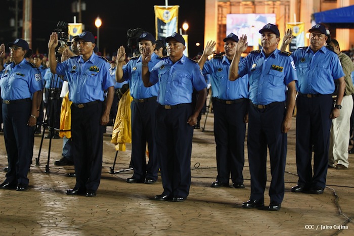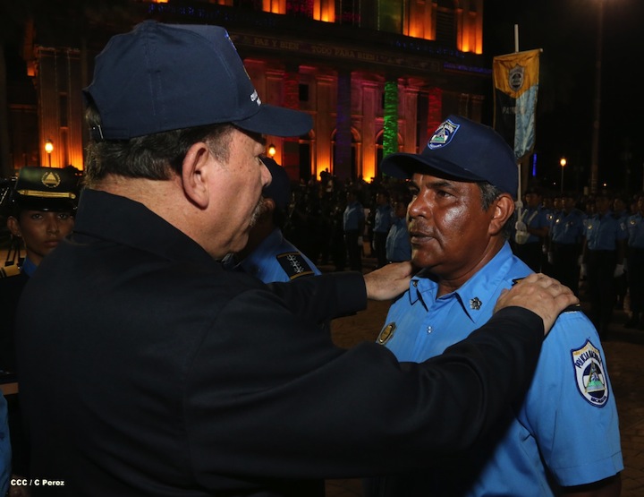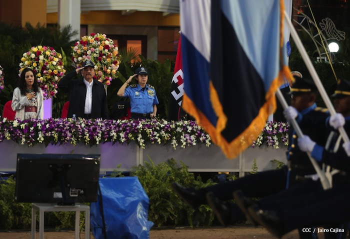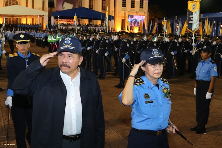 El presidente Daniel Ortega y la compañera Rosario Murillo presiden acto del 34 Aniversario de la Policía Nacional.