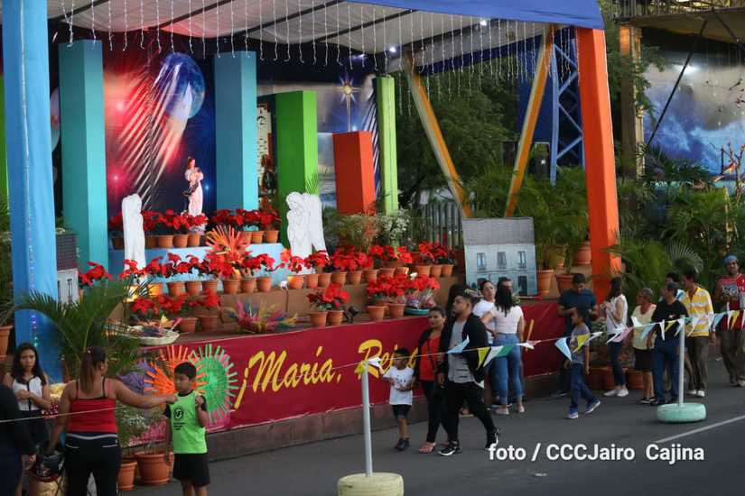 Las calles de Managua, especialmente, la Avenida de Bolívar a Chávez, se llenaron de miles de personas que decidieron recorrerla este domingo para disfrutar de la belleza de cada altar elaborado en homenaje a la Purísima Concepción de María.