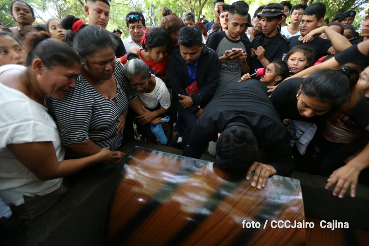 Miles de nicaragüenses participaron en las honras fúnebres de los hermanos suboficial mayor Carlos Alberto Sauce Ortiz, y suboficial Luis Alexander Mendieta Alemán, quienes dieron su vida por amor, defendiendo el derecho de vivir seguros que tenemos las familias nicaragüenses.