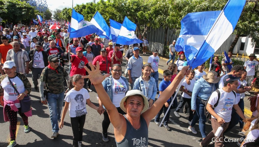 Las familias capitalinas saludaron los 13 años de Gobierno sandinista, con una caminata bajo el lema “Caminata por la paz, Cantos de Vida y Esperanza, adelante pueblo presidente, 2020 patria, paz y porvenir” en la que se celebró la alegría de vivir en paz y contar con un gobierno garante de las grandes transformaciones sociales.