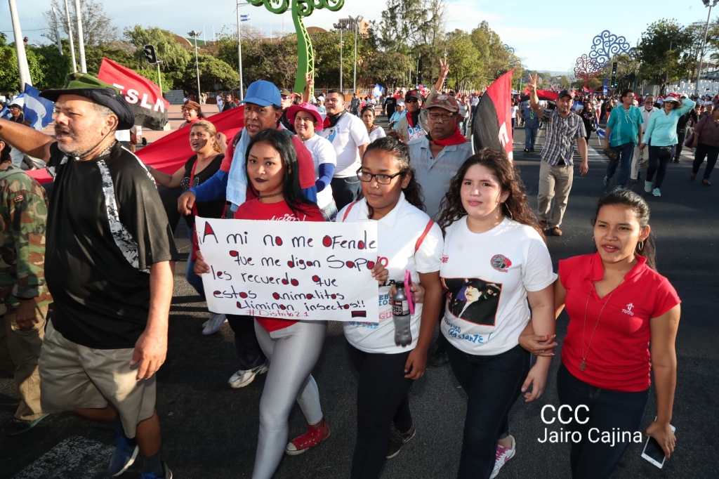 Los nicaragüenses caminaron en Paz, con banderas de unidad, con banderas de triunfos, portadas por manos honradas y honorables, manos nicaragüenses, manos de pueblo, trabajador y vencedor.