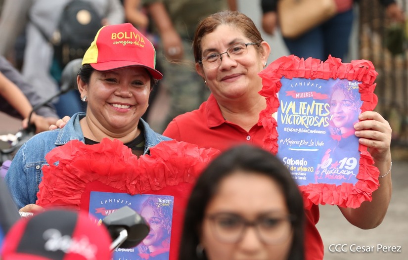 Miles de familias nicaragüenses participan la tarde de este sábado en una multitudinaria caminata ¡Mujeres Valientes, Mujeres Victoriosas!, en vísperas del Día Internacional de la Mujer, promoviendo y defendiendo la dignidad y derechos de la mujer.