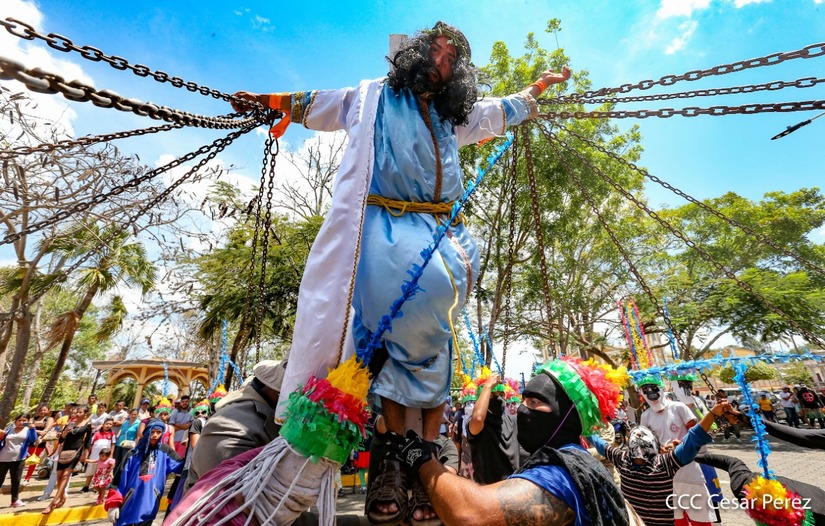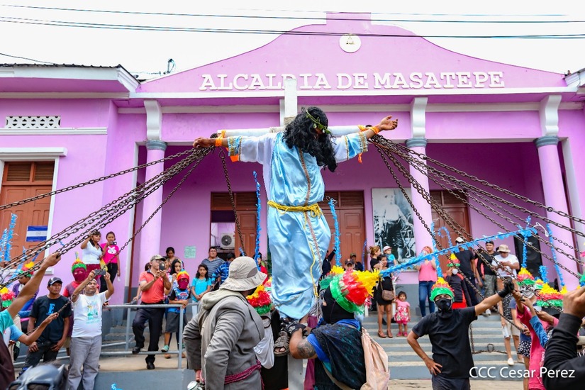 Los judíos de Masatepe volvieron a salir a las calles este jueves Santo para revivir la crucifixión de Cristo y traición de Judas. Cada Jueves Santos vestidos con coloridos atuendos jóvenes, adultos y niños se arman de grandes cadenas con las que atrapan a Judas para arrastrarlo por todas calles de Masatepe, un municipio del municipio de Masaya.