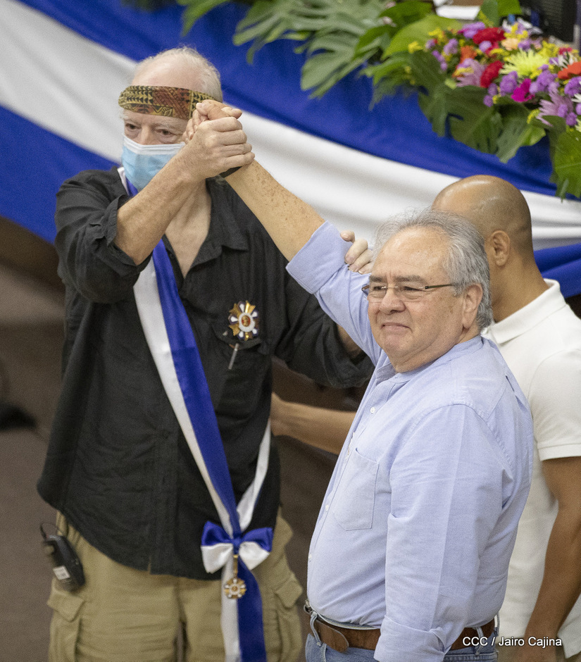 Brian Wilson, héroe de la solidaridad, recibió este martes entre aplausos la orden José dolores Estrada batalla de San Jacinto en grado de Gran Cruz. La UNAN Managua también le rindió homenaje al gran amigo de Nicaragua, el compañero Brian Wilson, héroe de la solidaridad y ejemplo de lucha por la paz, otorgándole el título honorífico de Visitante Distinguido.