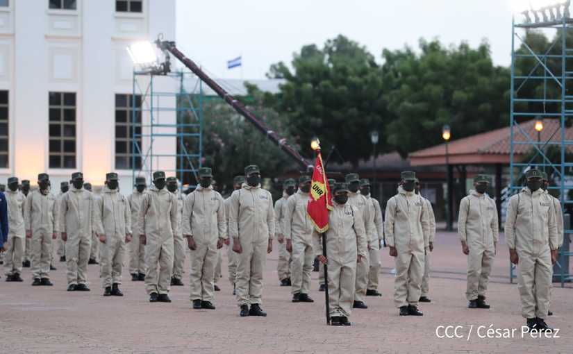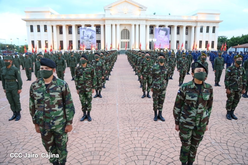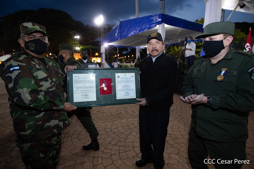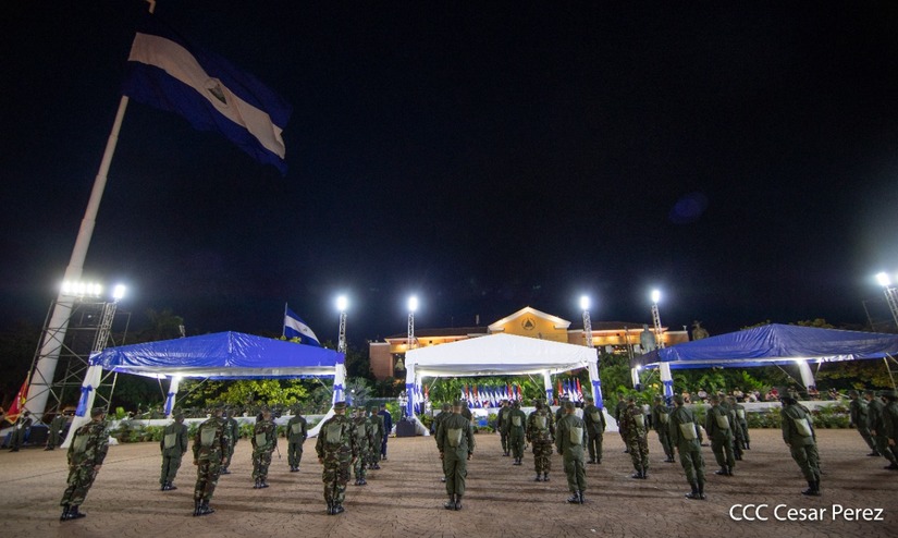 El Presidente de la República, comandante Daniel Ortega Saavedra y la vicepresidenta compañera Rosario Murillo, presidieron junto al comandante en jefe del Ejército de Nicaragua, general de ejército Julio César Avilés Castillo, el acto de conmemoración del 41 aniversario de constitución del Ejército de Nicaragua.