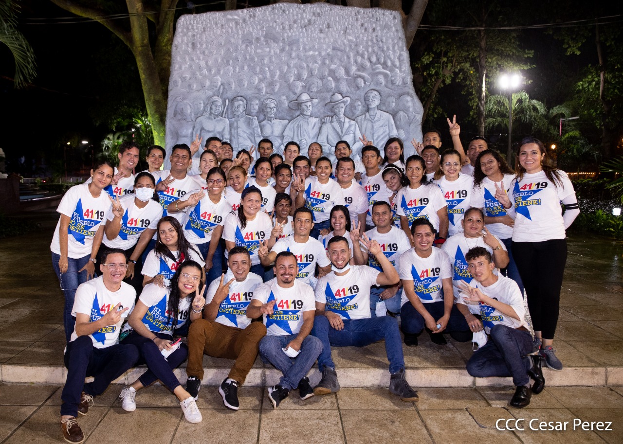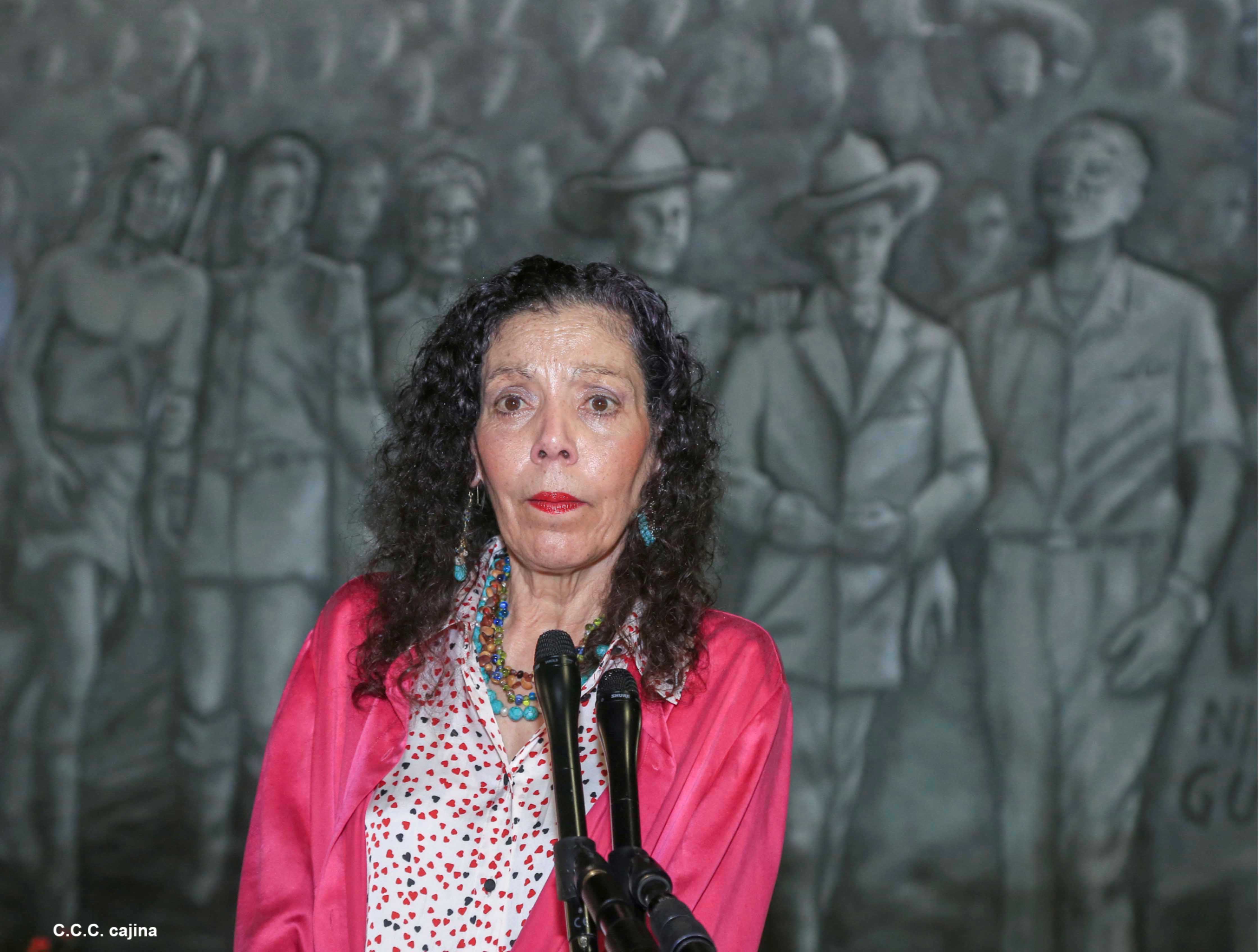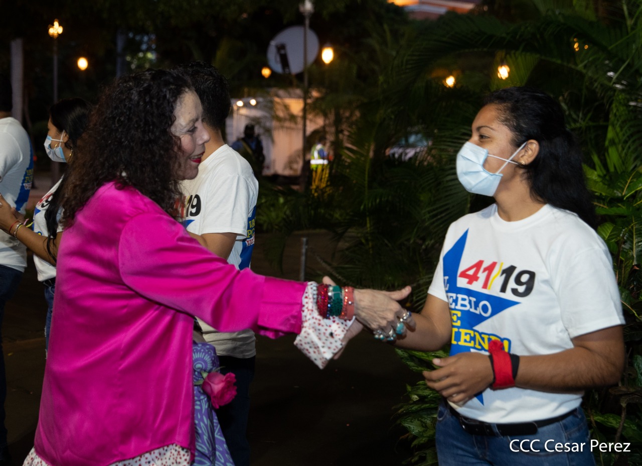 El Presidente de Nicaragua, Comandante Daniel Ortega y la compañera Rosario Murillo presiden el acto de conmemoración del 44 aniversario del paso a la inmortalidad del Comandante Carlos Fonseca Amador, desde el mausoleo en la plaza de la Revolución en Managua.