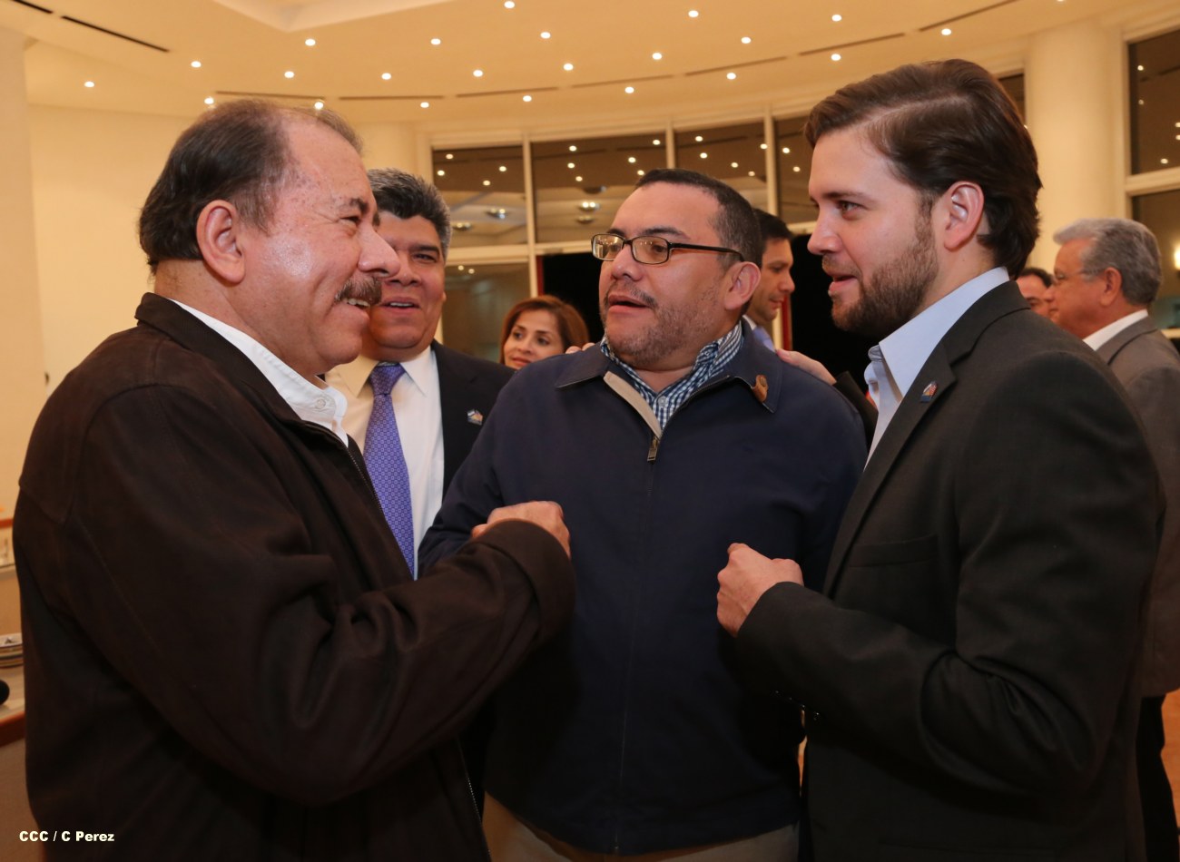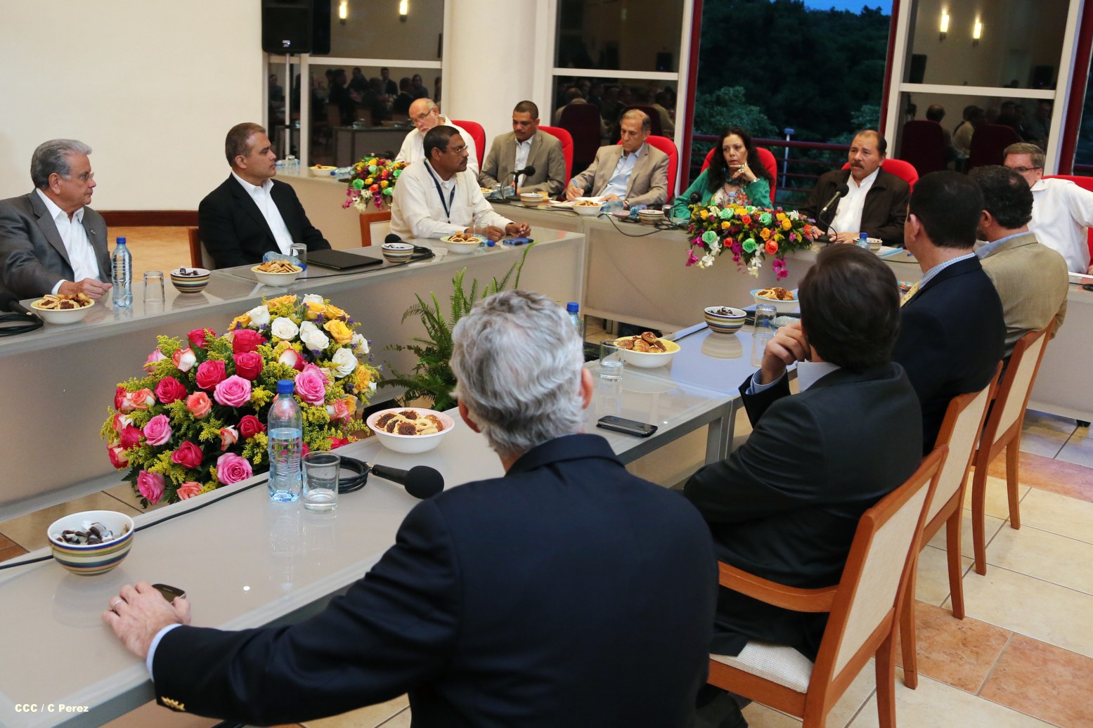 El Presidente de la República, Comandante Daniel Ortega Saavedra, sostuvo la tarde de este viernes un encuentro con miembros de la junta directiva de la Cámara de Comercio Americana Nicaragüense (AMCHAM).