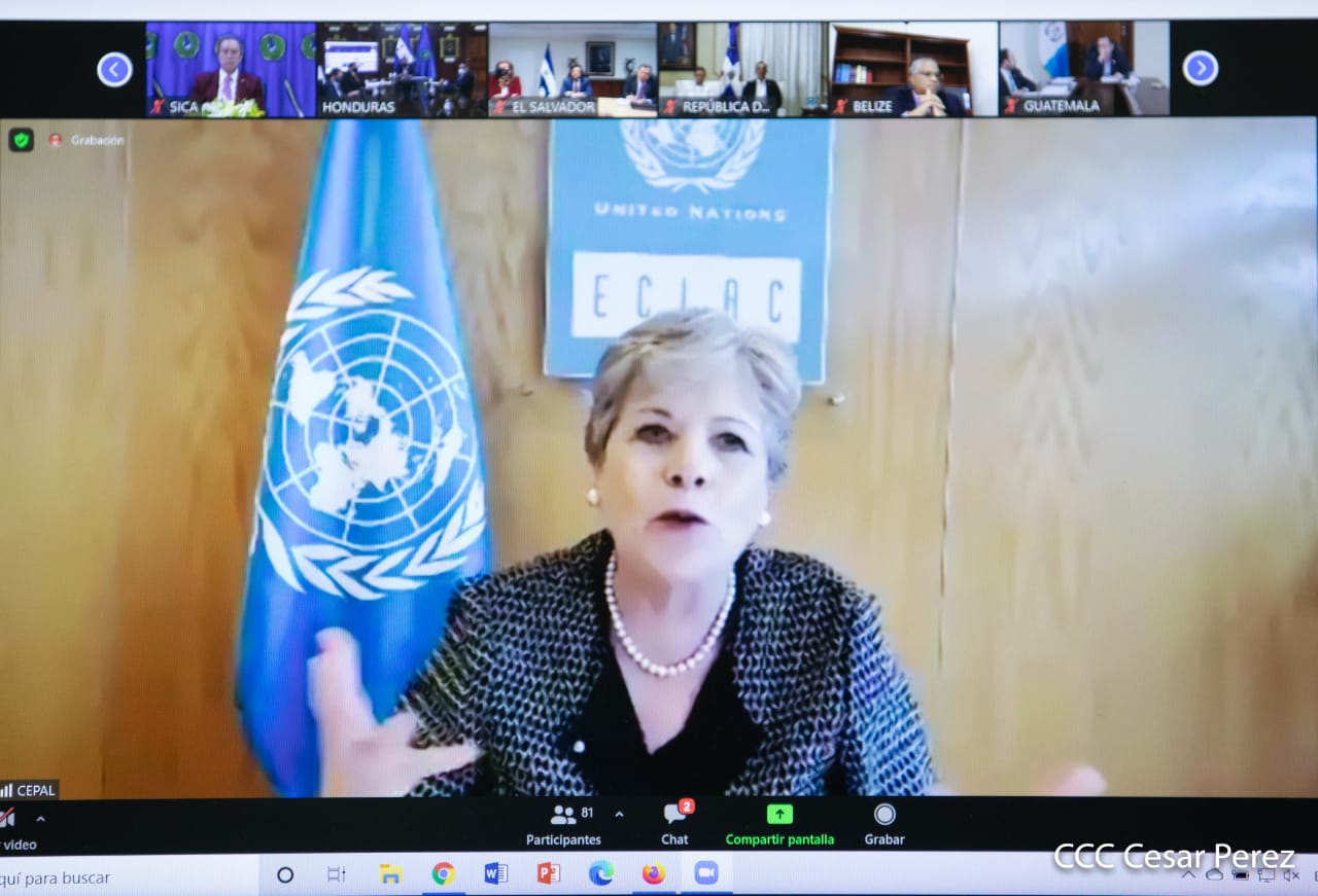 En la reunión además del Presidente de Nicaragua, Comandante Daniel Ortega y la Vicepresidenta Compañera Rosario Murillo, también participaron el Presidente de Costa Rica, Carlos Alvarado; el Presidente de Guatemala, Alejandro Giammattei; el Presidente de Honduras, Juan Orlando Hernández; el Primer Ministro de Belice, John Briceño; el Presidente de República Dominicana, Luis Abinader; el Vicepresidente de El Salvador, Félix Ulloa; el Secretario General del SICA, Vinicio Cerezo y el Secretario General de las Naciones Unidas, António Guterres.