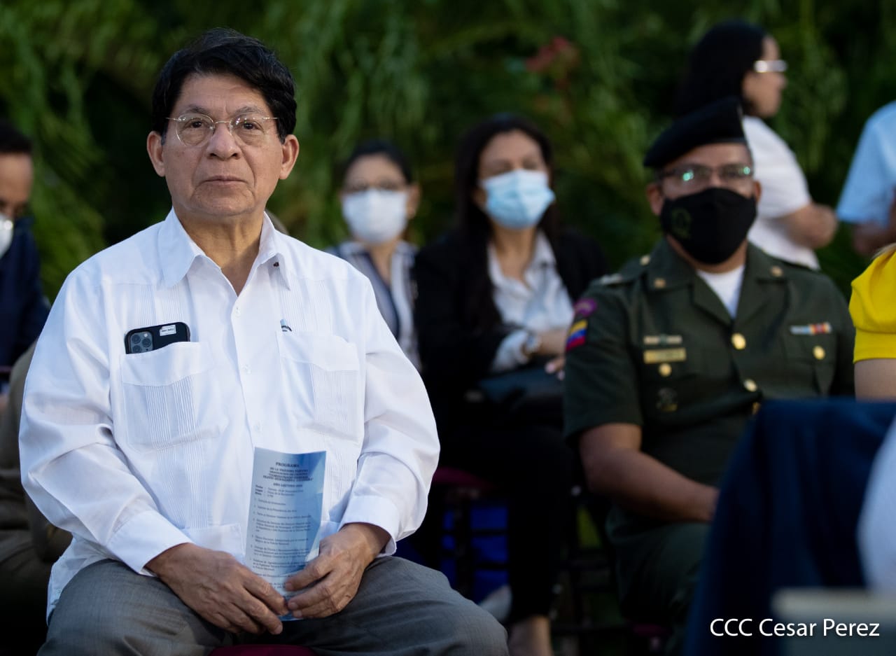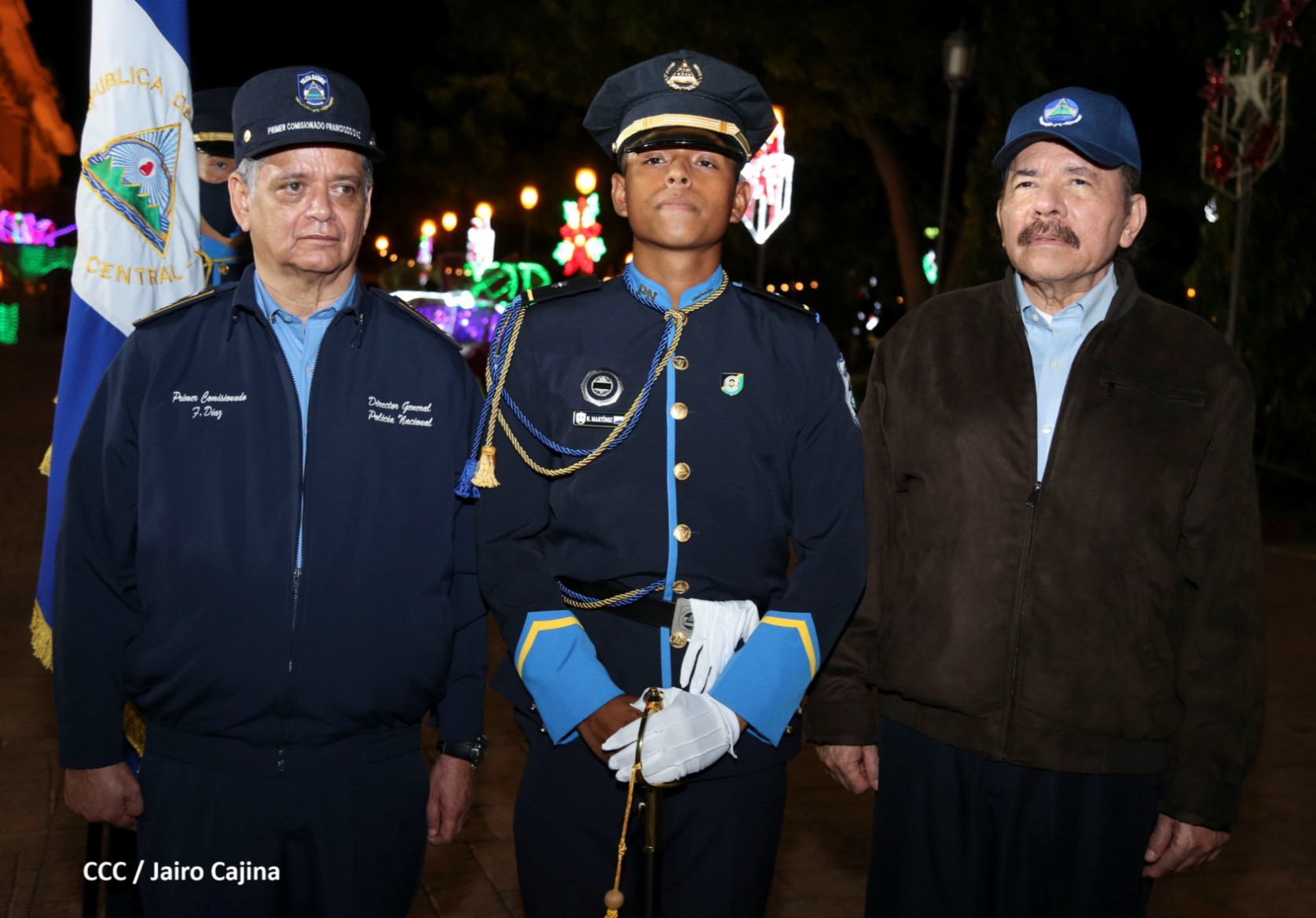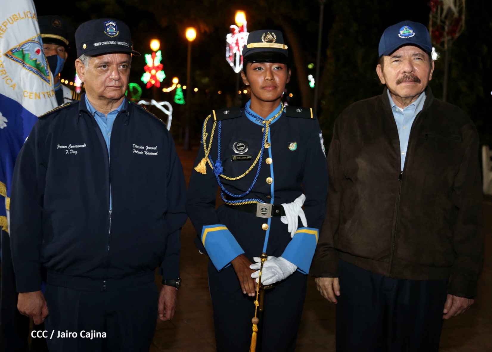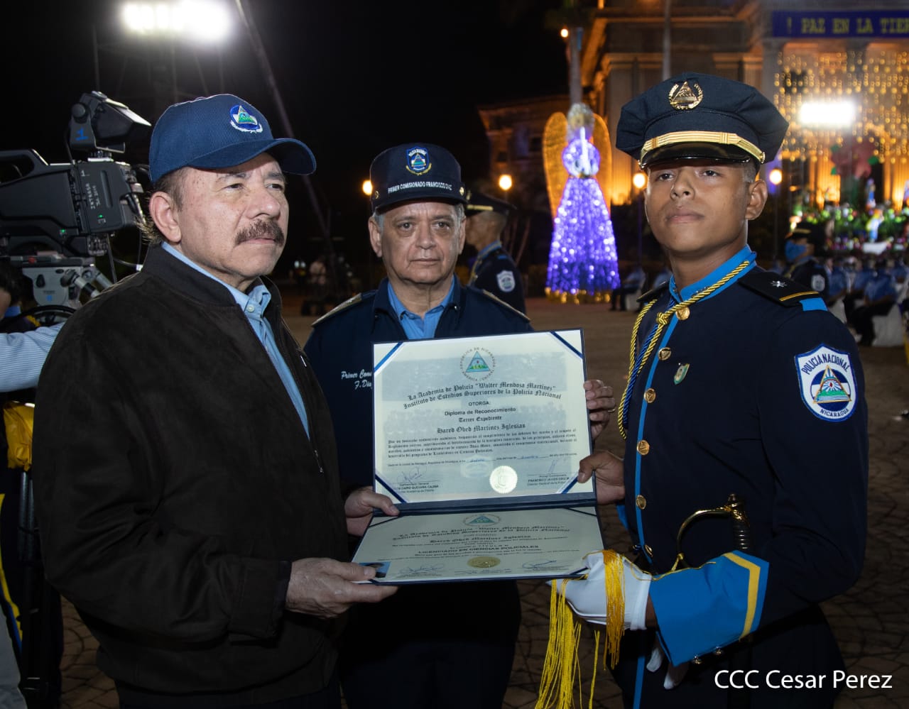 El Comandante Daniel Ortega, acompañado del Primer Comisionado Francisco Javier Díaz Madriz, entregaron títulos y reconocimientos a los tres pimeros expedientes