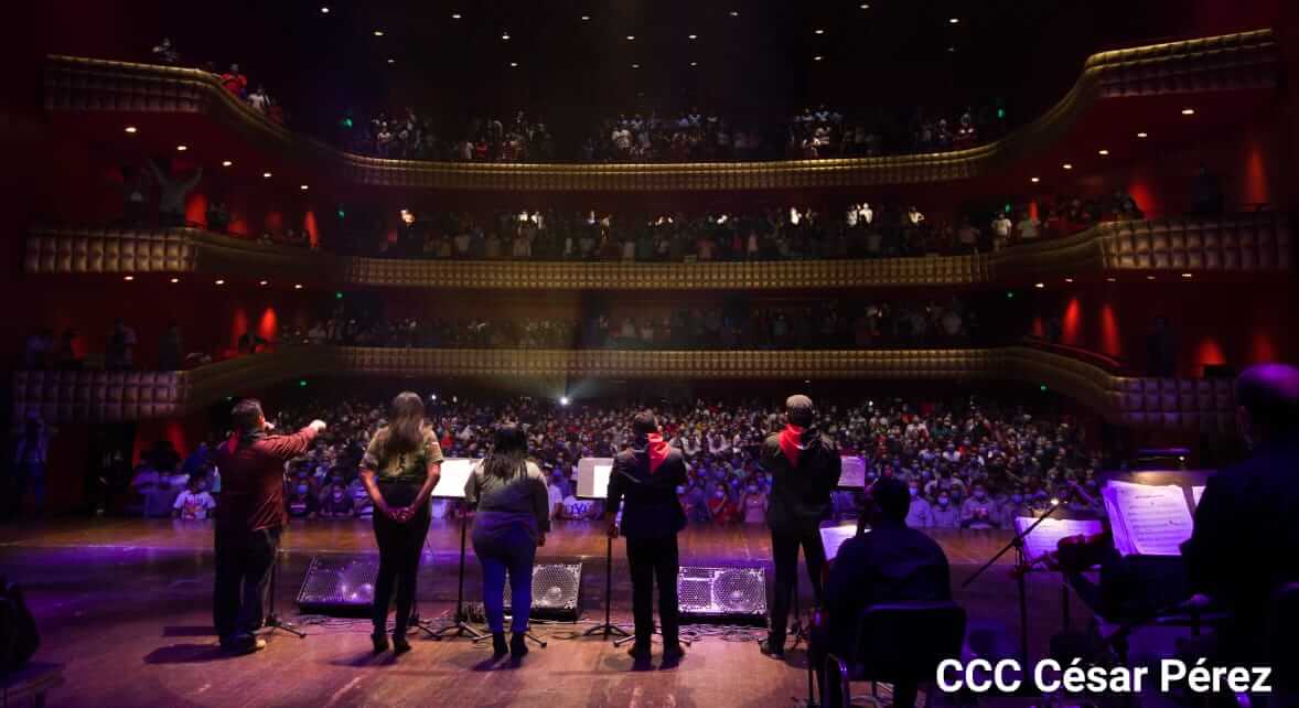 El Teatro Nacional Rubén Darío y el Movimiento Cultural Leonel Rugama se vistieron de gala con la cantata en homenaje al Padre de la Revolución denominada ¡Nicaragua libre y luminosa!