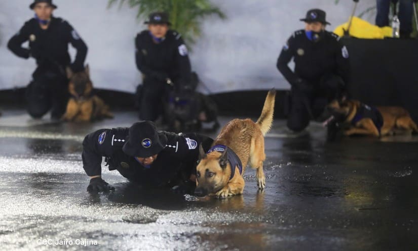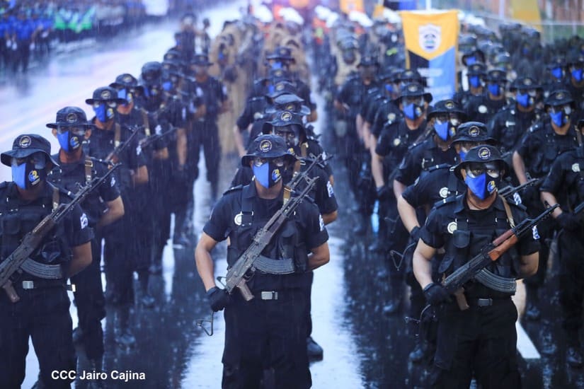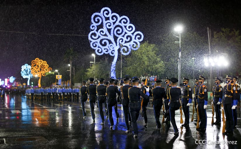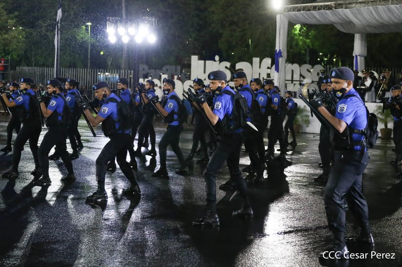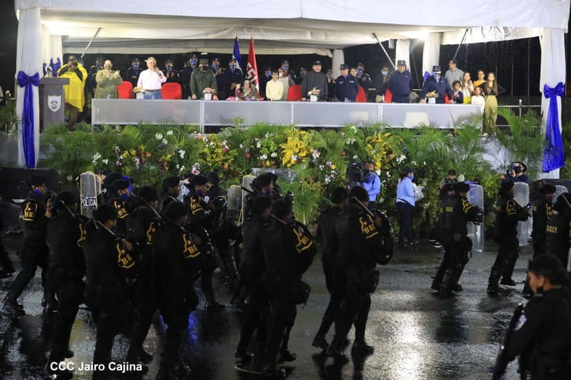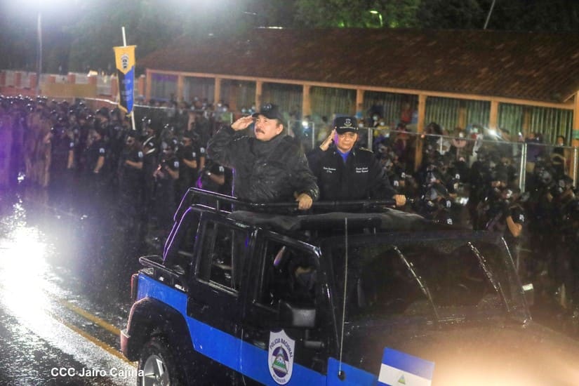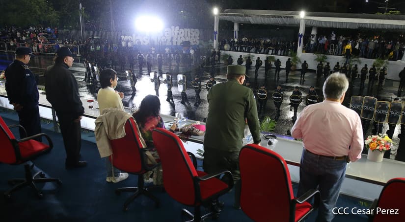 El Presidente de Nicaragua, Comandante Daniel Ortega, y la vicepresidenta, compañera Rosario Murillo, participan en el desfile policial "Centinelas de La Paz" en saludo al 42 aniversario de fundación de la Policía Nacional, que se desarrolla en la Avenida de Bolívar a Chávez.