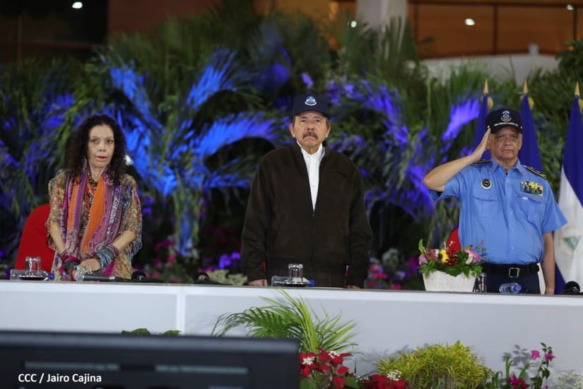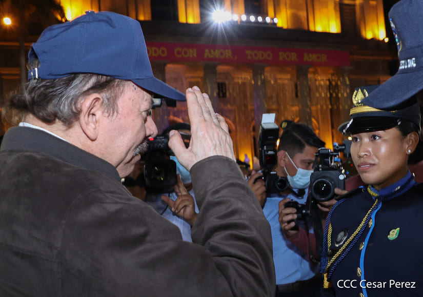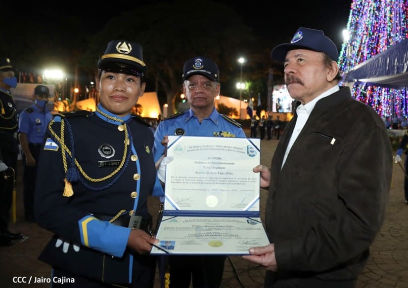 El Presidente de la República, Comandante Daniel Ortega Saavedra y la Vicepresidenta Compañera Rosario Murillo, presidieron el acto de la Vigésima Cuarta Graduación de Cadetes, Licenciados en Ciencias Policiales, de la Academia de Policía Walter Mendoza Martínez, dedicada al Héroe Nacional, Apóstol de la Libertad, General Benjamín Francisco Zeledón Rodríguez.