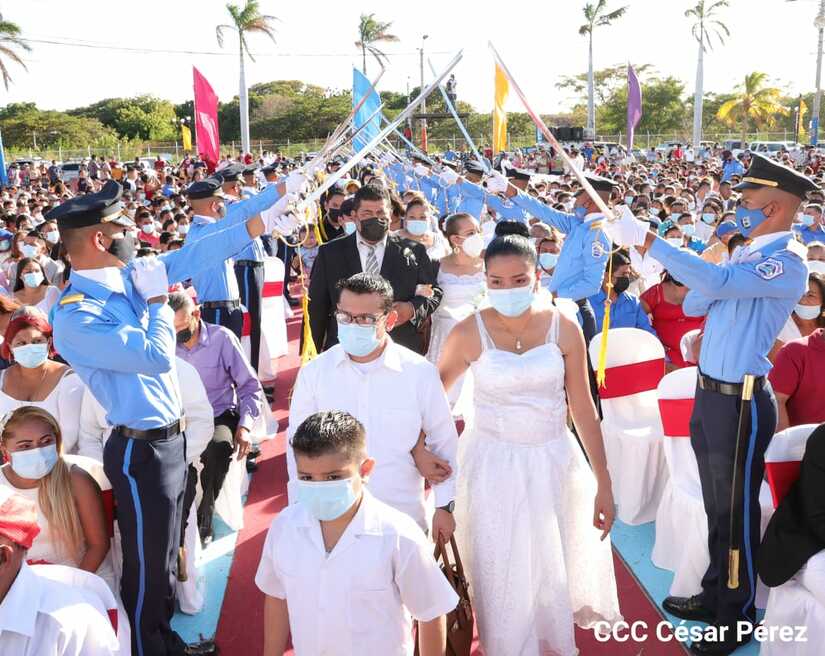 Cuatrocientas parejas se juraron amor eterno este 14 de febrero en el Puerto Salvador Allende de Managua, de manera simultánea.