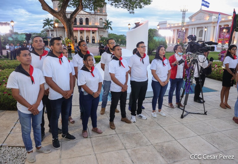Desde el mausoleo donde reposan restos del fundador del Frente Sandinista en la Plaza de la Revolución, se realiza este acto conmemorativo en presencia de autoridades del Gobierno y Juventud Sandinista.