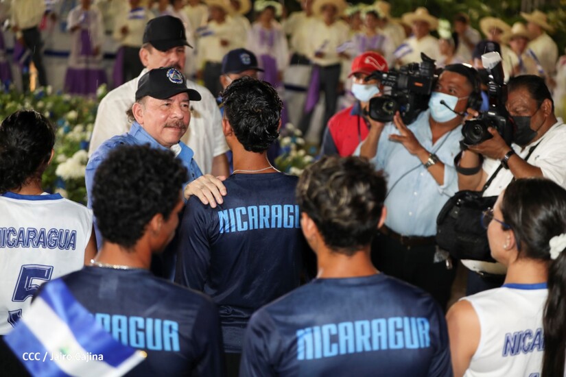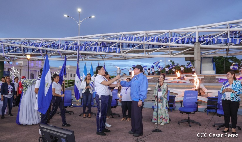 El Presidente Comandante Daniel Ortega y Compañera Vicepresidenta de Nicaragua, Rosario Murillo presidieron el acto de recibiento de la Antorcha Centroamericana de la Unión Fraternal.